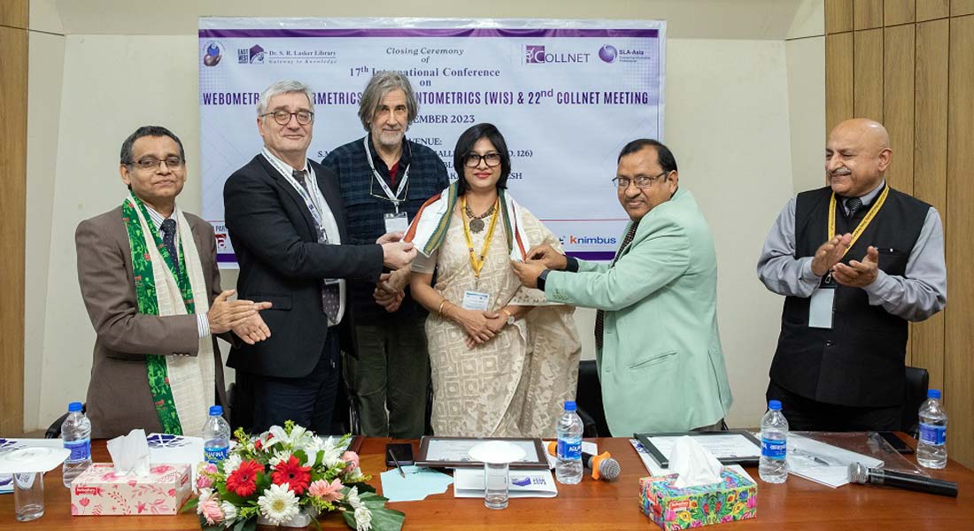 Dr. Dilara Begum, Associate Professor and Chairperson, Department of Information Studies, East west University honored with the ‘LIFETIME ACHIEVEMENT AWARD 2023’ by COLLNET, Society for Library Professionals (SLP) and Special Libraries Association (SLA), Asia Community for her outstanding contribution in research, collaboration, and library development for more than 25 years. The award was conferred at the 17th International Conference on Webometrics, Informetrics, and Scientometrics (WIS) and the 22nd COLLNET Meeting 2023 held at East West University, Dhaka, Bangladesh during December 8-10, 2023.