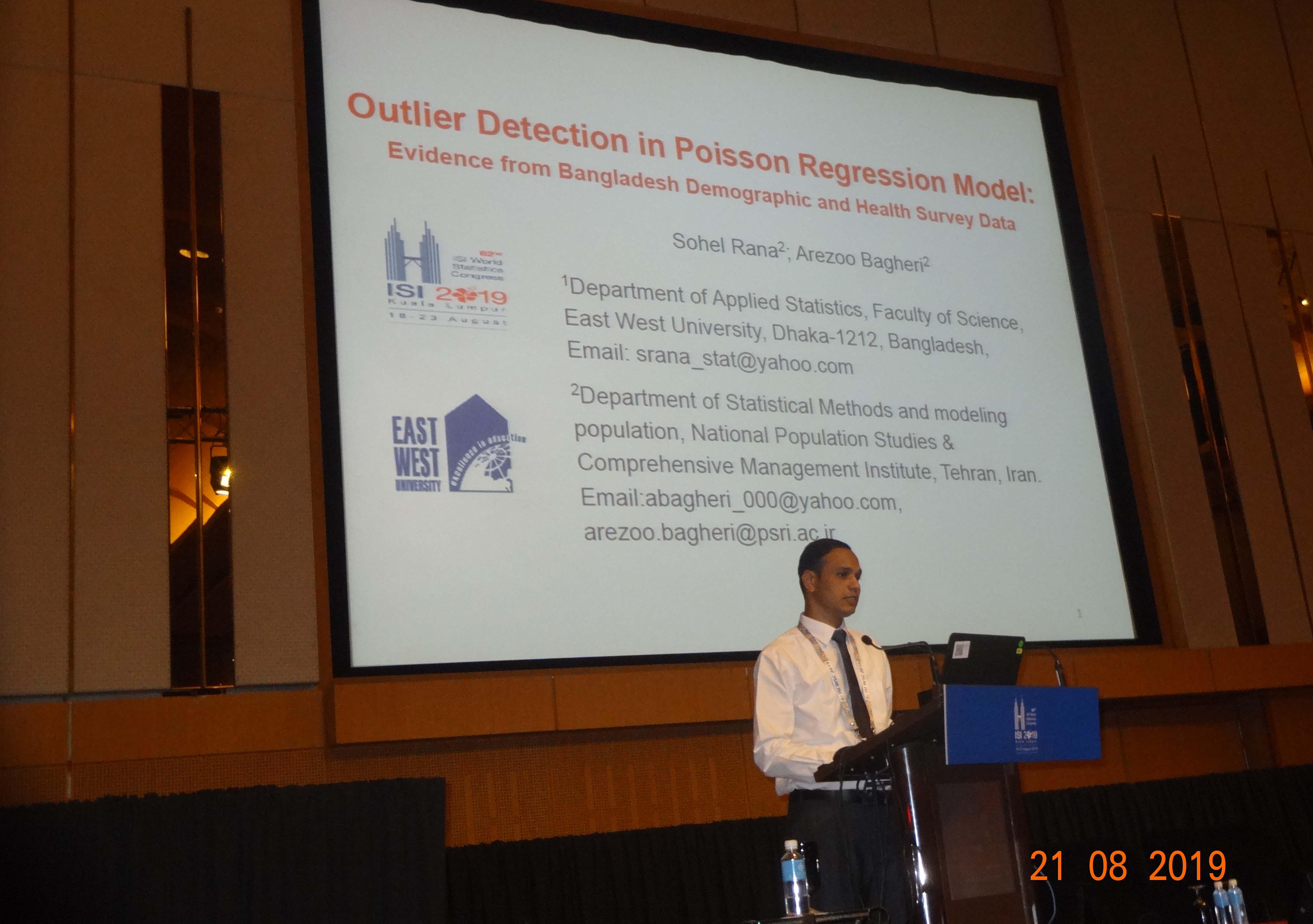 Dr. Md. Sohel Rana, Associate Professor, Department of Mathematical & Physical Sciences, EWU, has been honored as a Speaker in the “62nd ISI World Statistics Congress 2019”. The conference was held on 18 – 23 August, 2019 in Kuala Lumpur, Malaysia. This Congress was jointly organised by the Department of Statistics, Malaysia; Bank Negara Malaysia and Malaysia Institute of Statistics, and supported by the Malaysia Convention and Exhibition Bureau (MyCEB), an agency under the Ministry of Tourism and Culture Malaysia. The biennial World Statistics Congresses of the International Statistical Institute (ISI) and its seven Associations are very special events, brought together the vibrancy and diversity of the international statistical community in a congress full of invigorating presentations, discussion, gatherings, greetings, connections and networking. There were 2,500 delegates, comprising statistical researchers, academia, industry practitioners, analysts and policymakers, from all over the world to share insights on development in statistical science and to advance application of statistics for discovery, innovation and decision making. About 1,300 papers in various statistical disciplines and applications have been presented and discussed over a period of five days. Dr. Rana has presented his paper titled on “Outlier detection in poission regression model- Evidence from Bangladesh Demographic and Health Survey data” in the special topic session “STS- 444: Advances in modelling demographic data”. He was also the chair of another special topic session “STS-505: Practical Applications of robust methods for modeling and analyzing environmental-related data having outliers”.