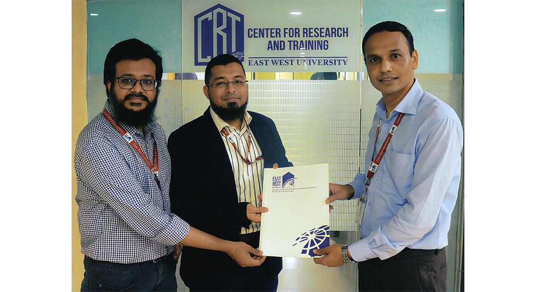 Dr. Sadik Rahman, Assistant Professor, Department of Civil Engineering, East West University, and his team received a 25.15 lac taka research grant from the Centre for Research and Training East West University (CRTEWU) for the research proposal “Assessing the Reuse Potential of Water Collected from the Air Conditioning Units of East West University: A Pilot Study on Air Condensate Harvesting.” The team includes Dr. Sadik Rahman, Assistant Professor, Department of Civil Engineering, as PI; Dr. Mohammad Manzurul Islam, Assistant Professor, Department of CSE, as Co-PI; and Prof. Dr. Md. Sohel Rana, Department of MPS, Asso. Prof. Dr. Abdullah Al-Mamun, Department of Civil and Environmental Engineering, KFUPM, Saudi Arabia, as an external collaborator.