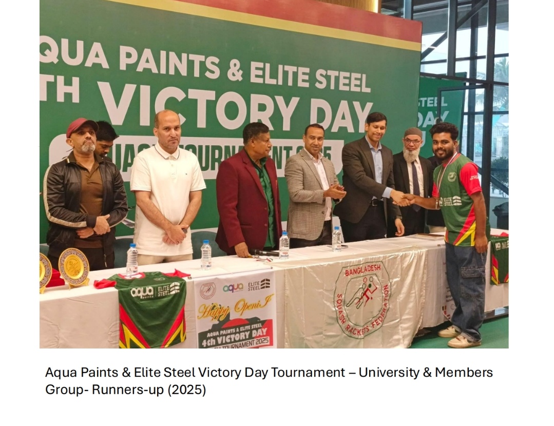 Walid’s most recent victory includes being crowned the Champion of the Mehra-IUB Inter-University Squash Tournament 2025. This adds to his consistent success in the Aqua Paints & Elite Steel Victory Day Tournament (University & Members Group), where he secured the Runners-up position in 2025 and was the Champion in 2024.