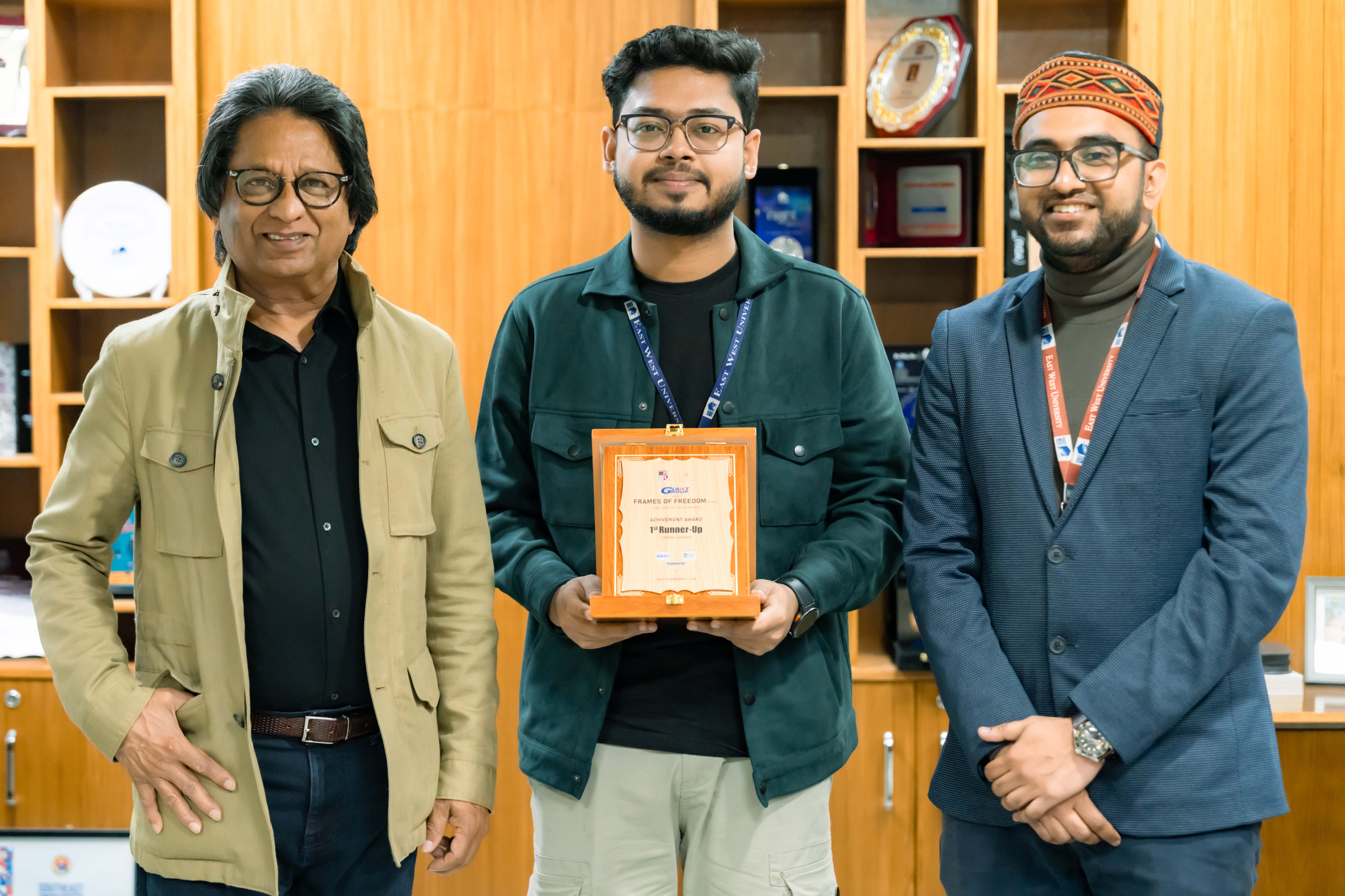East West University proudly congratulates Mahdin Shafiq Omi the President of East West University Photography Club for securing the 1st Runner-Up (Camera Category) at Giant Group presents Frames of Freedom of BUFT: From Uprising to Awakening, organized by the BUFT Photography Club and co-presented by PUSAB and S & S Associates.