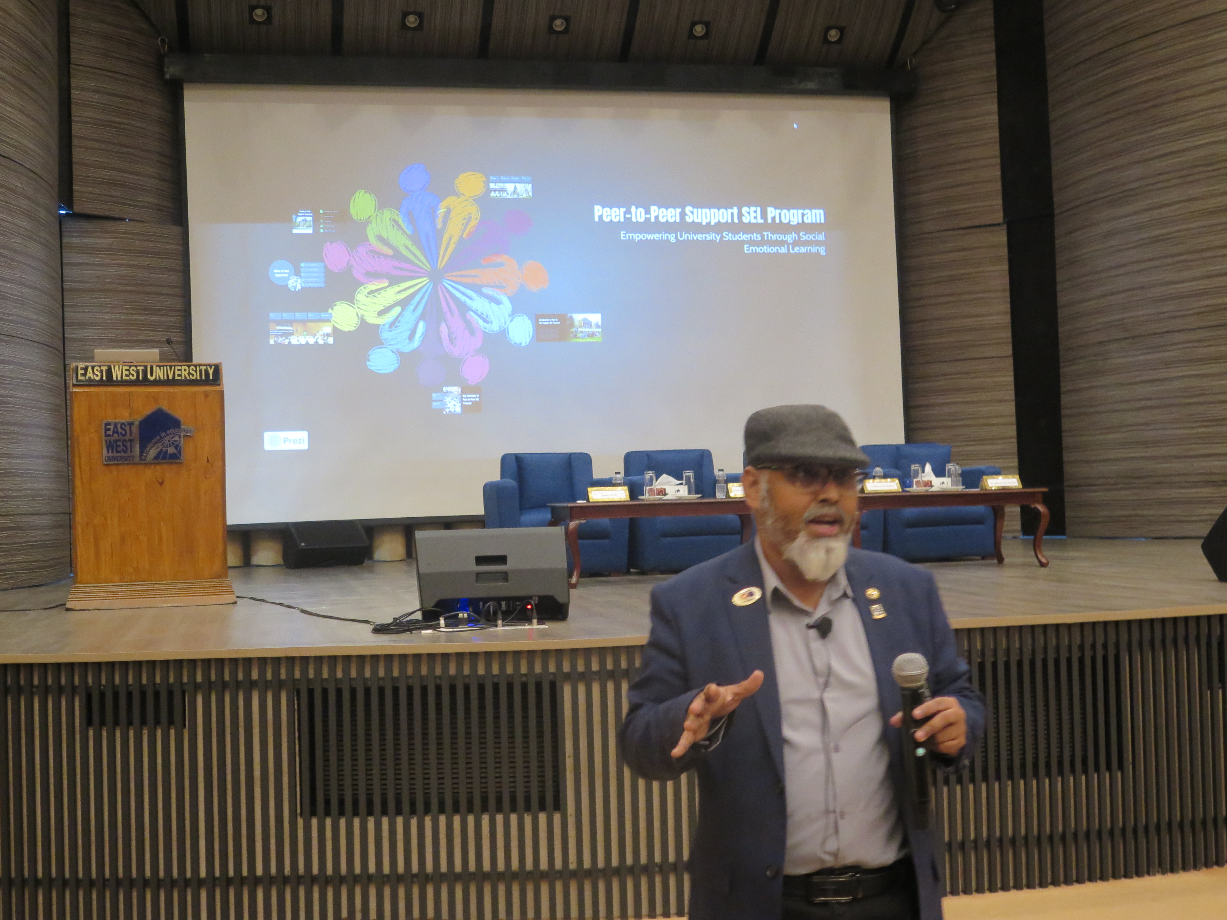 The department of Students’ Welfare of East West University (EWU) hosted a vital "Peer-to-Peer Orientation Learning Session on Social Emotional Well-being" on November 25, 2025, at the Manzur Elahi Auditorium. The program was organized by the University Grants Commission (UGC) of Bangladesh, in collaboration with UNESCO. The session was designed to equip students with the necessary skills to manage academic pressures, enhance mental resilience, and build effective support networks among their peers.