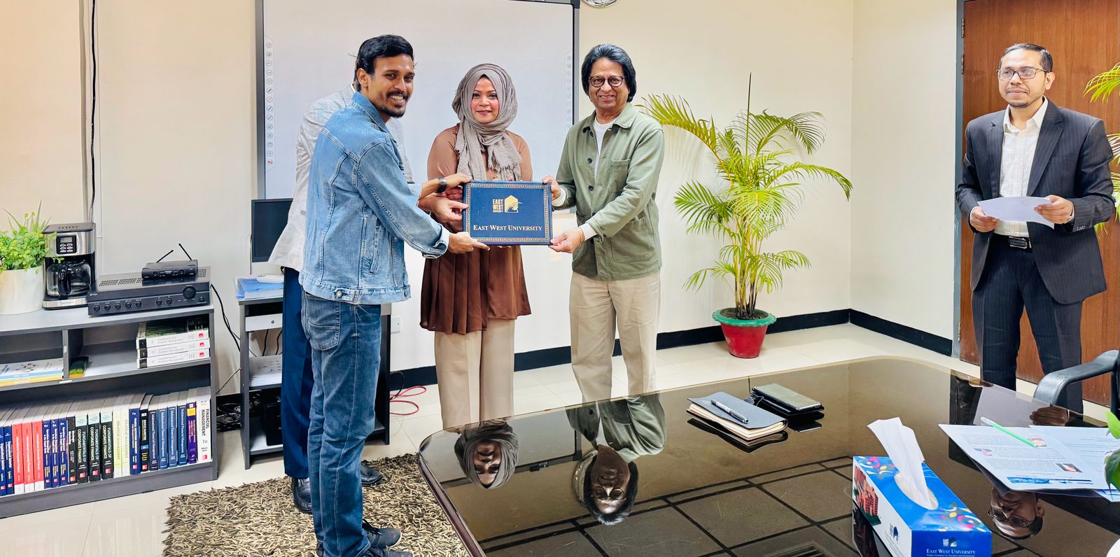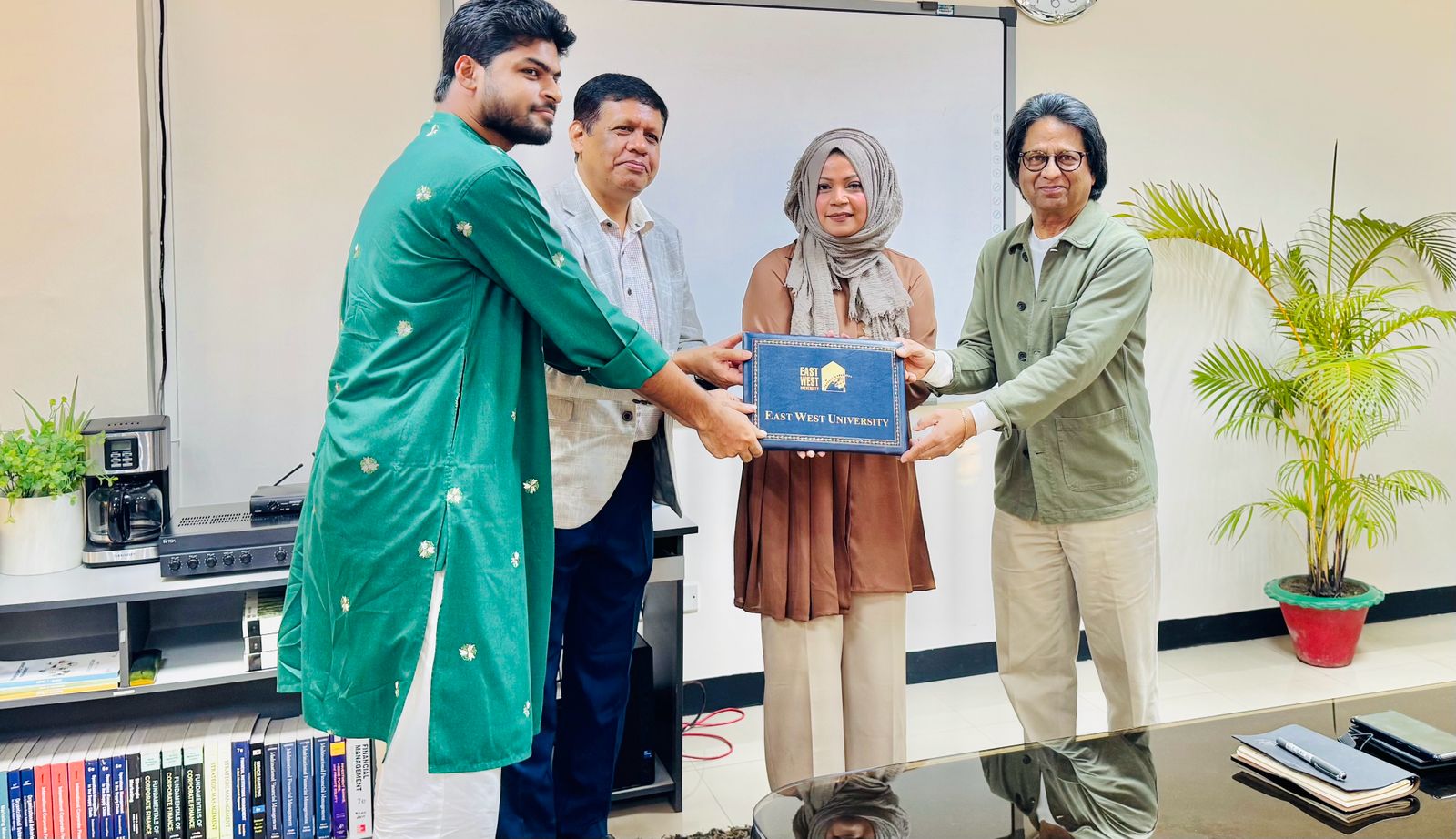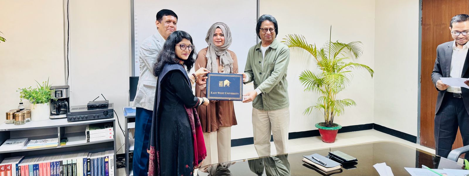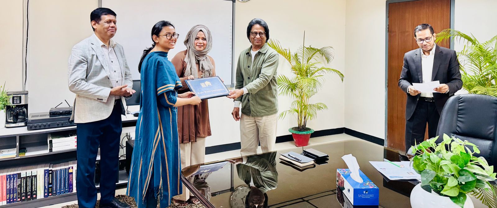 A Certificate-Giving Ceremony of the certificate course Integrated Supply Chain Management Program, offered by East West University in Collaboration with the Bangladesh Freight Forwarders Association (BAFFA), was held on 14 December 2025 at 3:00 PM in Room 418, BBA Seminar Room. The event was honored by the presence of Professor Shams Rahman, Vice Chancellor, Dr Farhana Ferdousi, Chairperson & Professor; Department of Business Administration and Md. Anamul Hoque, Assistant Professor, Department of Business Administration from East West University and Mohammed Jahir Ahmmed Sarker, Director, Bangladesh Freight Forwarders Association (BAFFA) and President, Bangladesh Logistics & Supply Chain Federation, Managing Director, Air Sea Global Freight Limited, CEO, ASG Expo Logistics & World Trade Inc. Professor Shams Rahman highlighted the program’s significance and prospects, while Dr Ferdousi expressed gratitude for his invaluable support in developing the course module. Md. Anamul Hoque encouraged participants to share their feedback, and they expressed their enthusiasm upon successfully completing the four-month course. The ceremony concluded with distributing certificates to the participants and on a celebratory note, with all dignitaries extending sincere congratulations to the graduating participants.