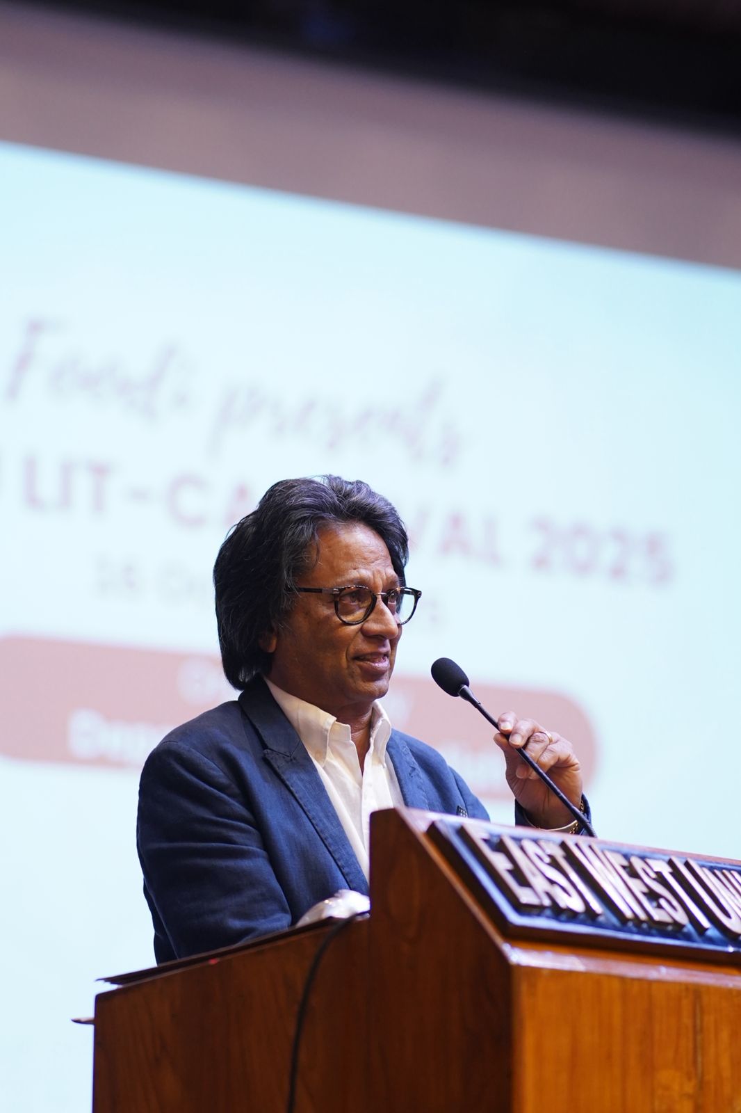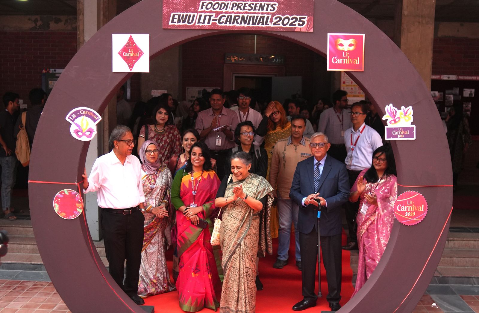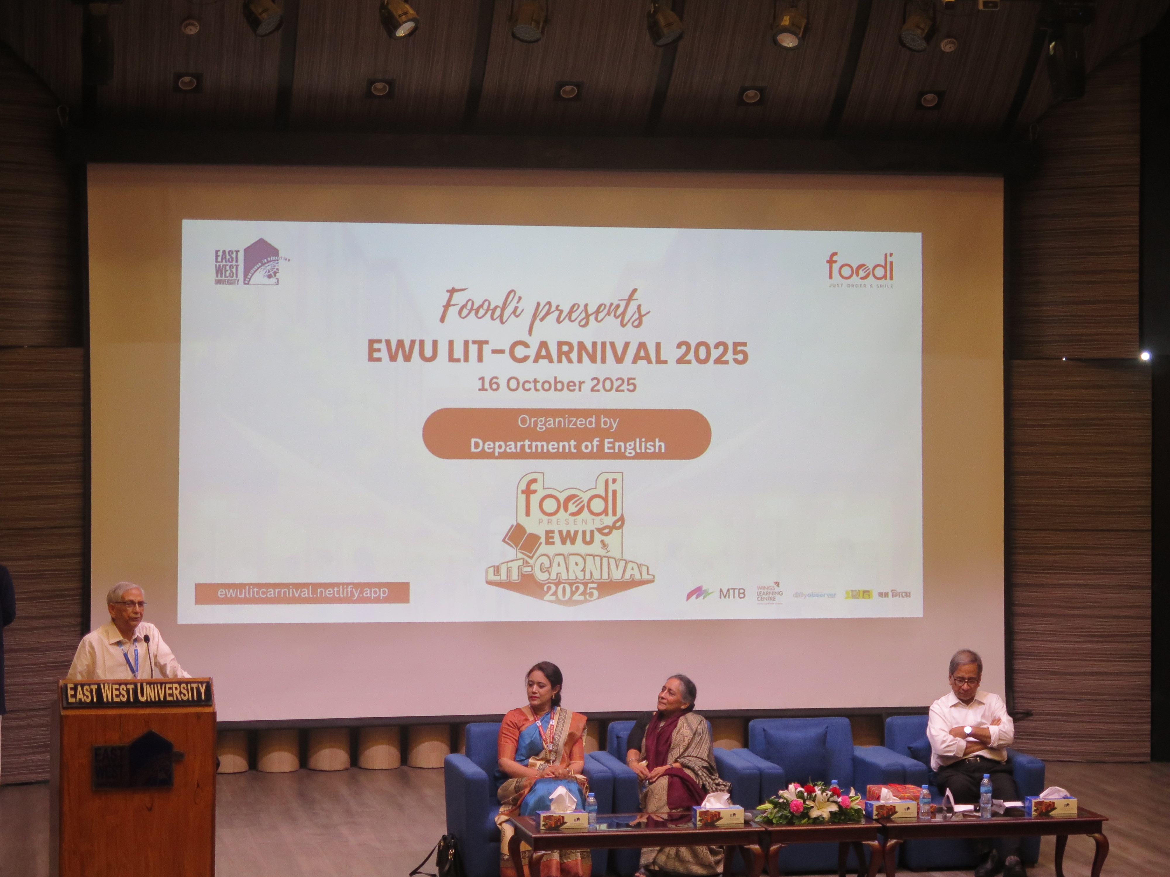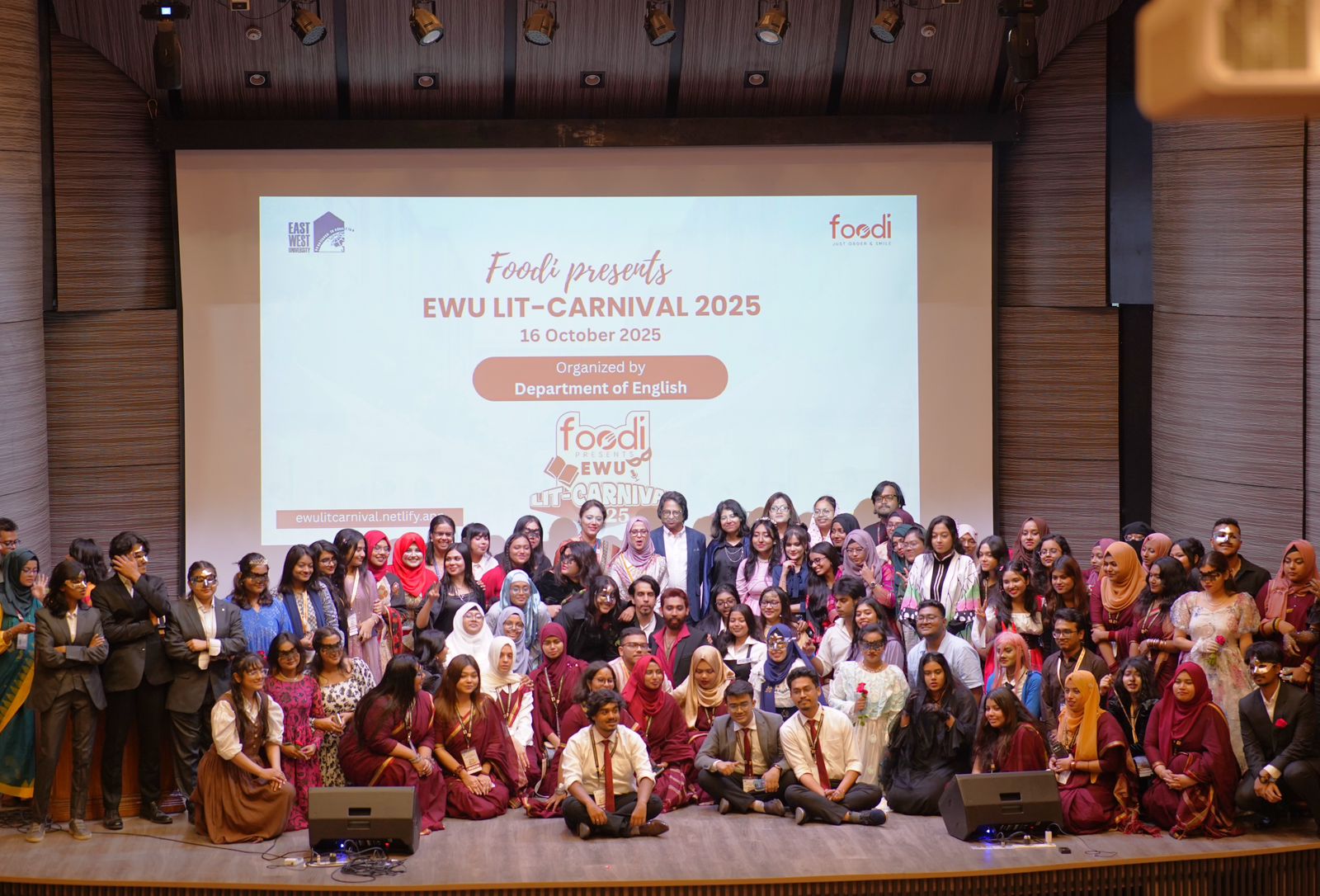The Department of English, East West University, organized a day-long literary event titled "Foodi Presents EWU Lit- Carnival 2025" on October 16, 2025. Amidst much excitement and enthusiasm of participants, attendees, and guests from all across Bangladesh, the event showcased the biggest celebration of literature and arts of the year. More than 200 students and literary enthusiasts from 22 public and private universities competed in various segments - from Spot Poetry and Recitation to Comic-Con andCosplay, Poster Presentations, Drama, and Masquerade. The carnival allowed them to exhibit their creativity and present their ideas to a wider audience. The festival also included interactive stalls, such as a literature-themed food court and a used-book swap. Professor Dr. Mohammed Farashuddin, the Chairperson of the Board of Trustees of East West University, and Professor Shams Rahman, the Vice Chancellor of East West University, were present at the opening and concluding ceremony respectively. Ms. Luva Nahid Choudhury, the Director General of Bengal Foundation, inaugurated the program as the Chief Guest. Ms. Munize Manzur, a member of the Board of Trustees of East West University, was invited as one of the esteemed judges. Renowned academics and cultural figures—including Dr. Fakrul Alam, Dr. Ahmed Ahsanuzzaman, Ms.Tahmina Ahmed, and Mr. Mashrur Shahid Hossain also graced the event with their presence.