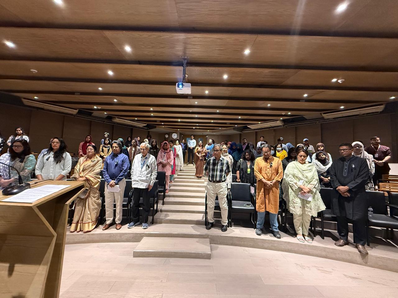 The program began with a one-minute silence to pay tribute to the departed soul. Professor Dr. Mohammed Farashuddin, Chairperson, Board of Trustees, EWU, Professor Shams Rahman, Vice Chancellor, EWU, Professor Dr. Fakrul Alam, Advisor, Department of English, EWU and family members of Mr. Shafiqur Rahman shared heartfelt reflections on Mr. Rahman’s dedication, leadership, and inspiring mentorship. Faculty members, students, and administrative staff gathered to express their deep sorrow and respect. His colleagues: Professor Dr. Muhammed Shahriar Haque and Zohur Ahmed, Assistant Professor, Department of English highlighted his commitment to academic excellence, while one of his former students, Md. Mahmudul Hasan, fondly remembered his guidance and compassion. Associate Professor Dr. Akhter Jahan, Chairperson, Department of English brought the program to a close with her sincere speech.