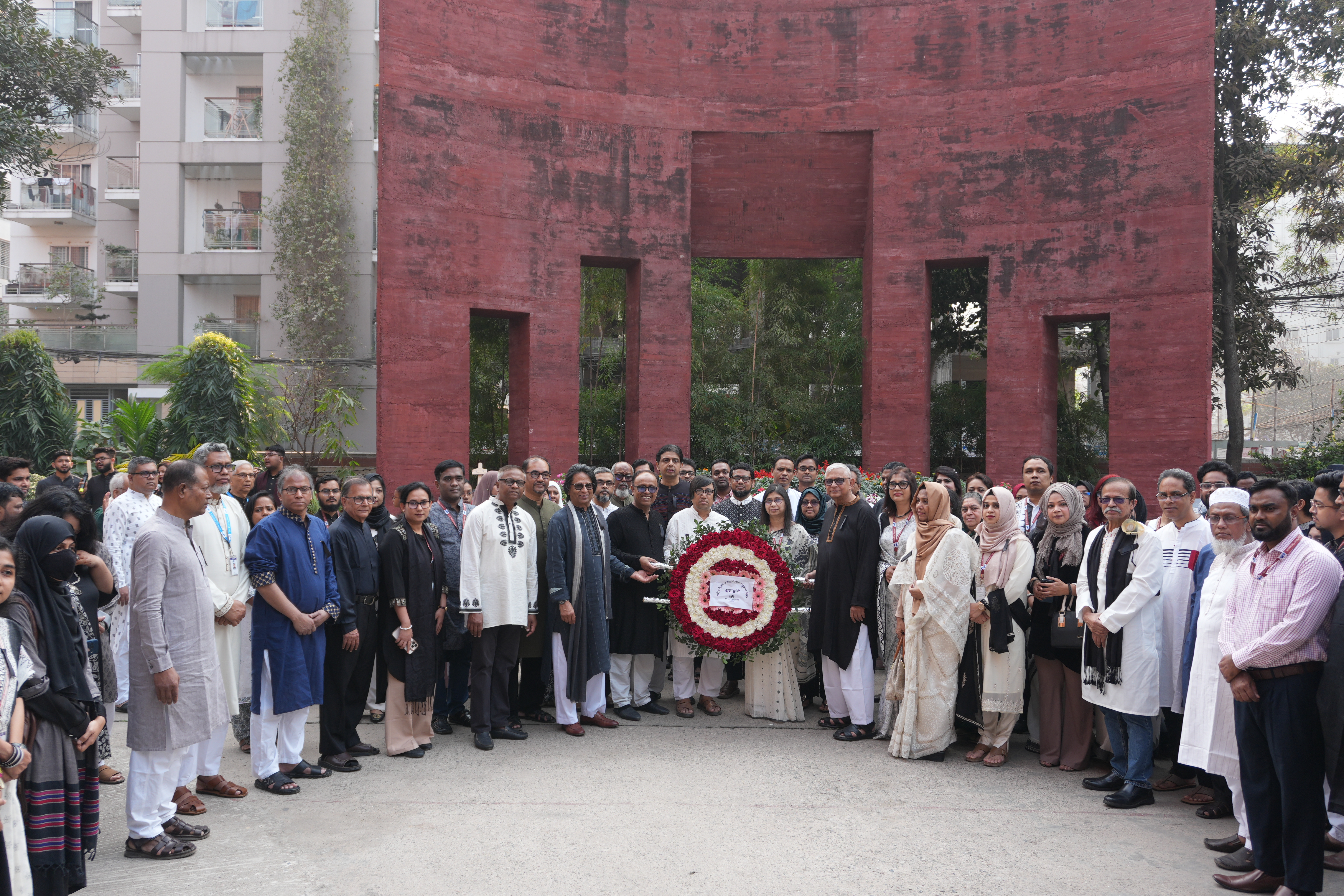 The commemoration began in the early hours of the 21st February 2026 morning with a "Provat Fery" rally through the Aftabnagar area. Participants, including members of the university administration, faculty, and students, marched in a disciplined procession to mark the occasion. Following the rally, a floral wreath-laying ceremony took place at the university’s own ‘Shaheed Minar’ on campus. Wreaths were placed in a gesture of deep respect by the Board of Trustees, University Administration, and various academic departments and student clubs.