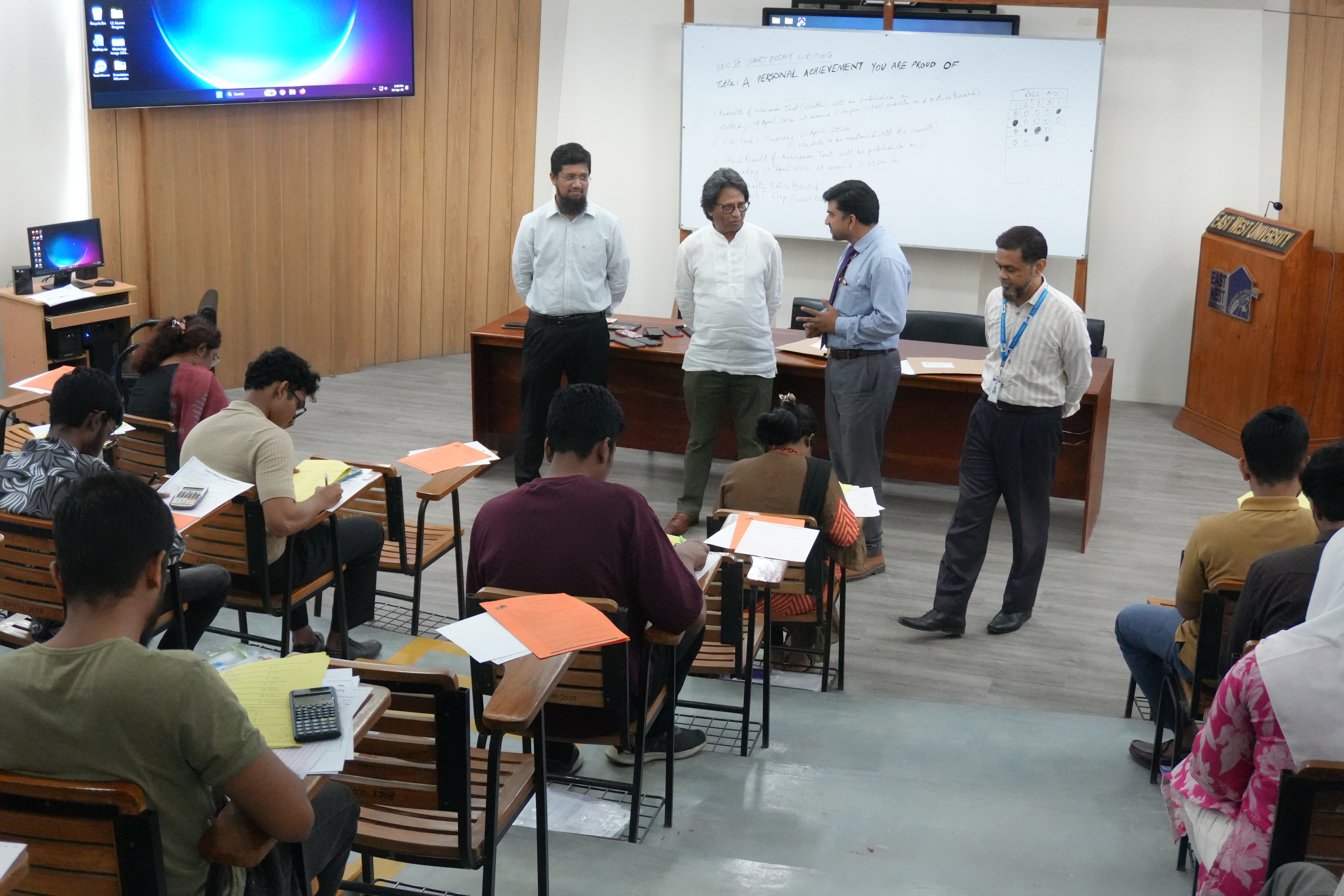 The university’s leadership was present at the campus entrance to personally welcome the aspiring students. Notable attendees included Professor Dr. Mohammed Farashuddin, Chairperson of the Board of Trustees; Professor Dr. Shams Rahman, Vice-Chancellor; Professor Dr. M. Ashik Mosaddik, Pro Vice-Chancellor; Air Commodore (retd) Ishfaq Ilahi Choudhury, Treasurer; and Dr. Anisur Rahman, Proctor. During the examination, the leadership team visited several halls to oversee the proceedings and expressed their high satisfaction with the disciplined and efficient execution of the admission process.