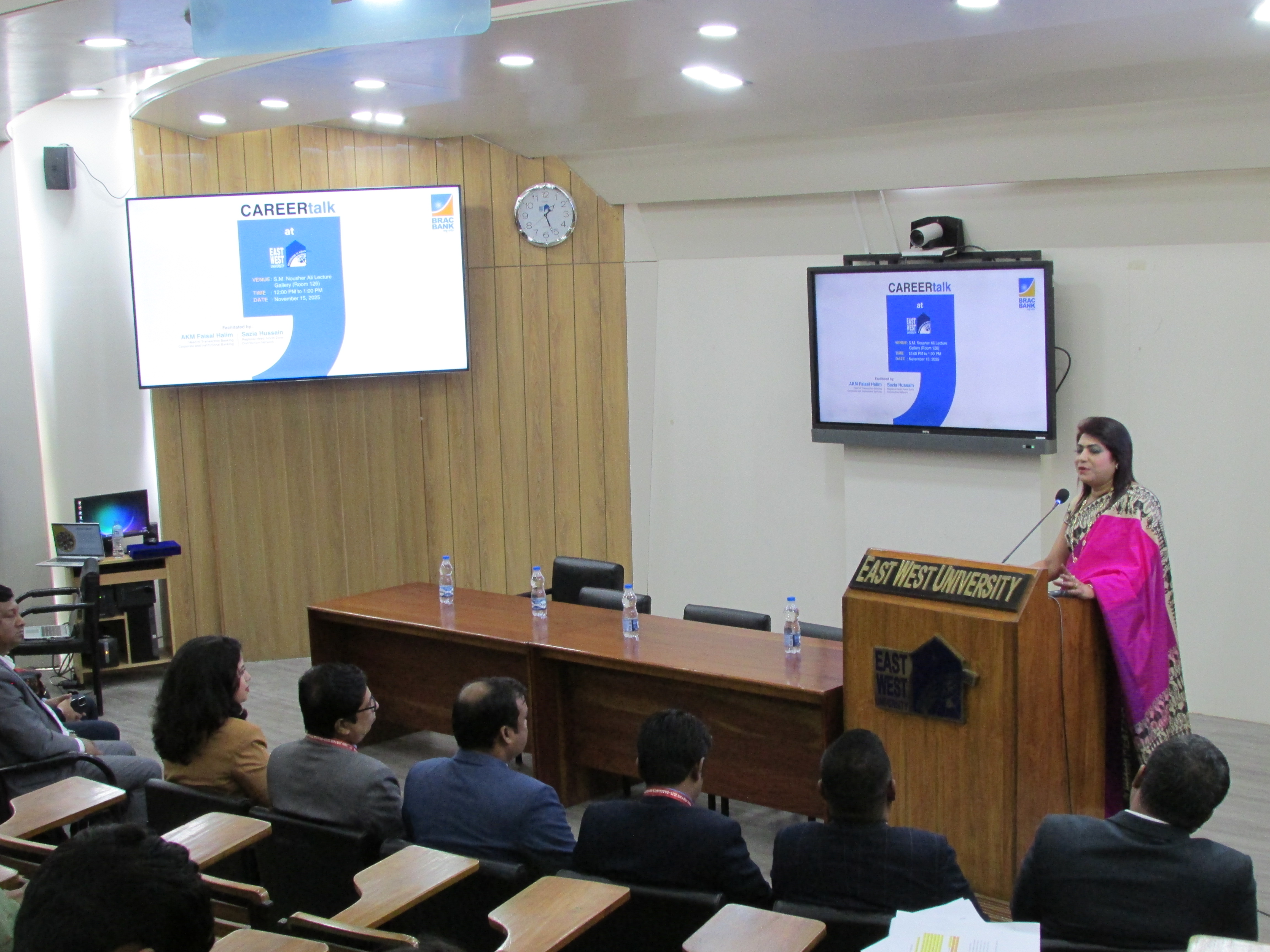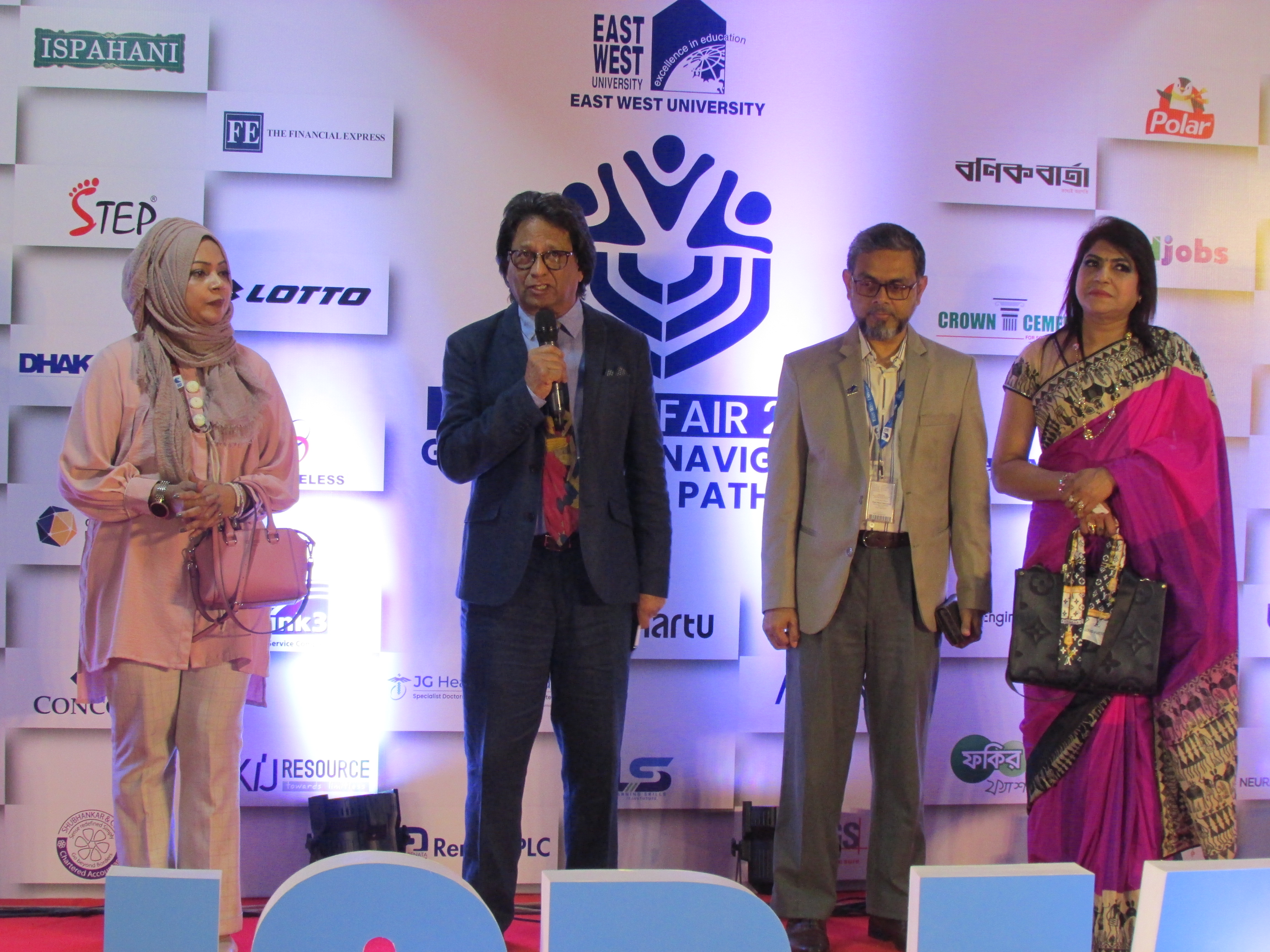 Professor Dr. Mohammed Farashuddin, Chairperson of the Board of Trustees (EWU) and former Governor of the Bangladesh Bank, emphasized the importance of entrepreneurship for national development. He asserted that the government should prioritize creating and nurturing small and medium enterprises (SMEs) to reduce poverty and inequality in the country. Dr. Farashuddin suggested creating three million small entrepreneurs, providing them with training and low-interest or Islamic Mudāraba method loans to boost national production and employment. Professor Dr. Shams Rahman, Vice Chancellor of EWU, stated that the 'Job Fair' is organized to establish a vital link between industry and academia. He noted that at the job fair, students are not only applying to their preferred organizations, but organizations are also able to find their preferred graduates.