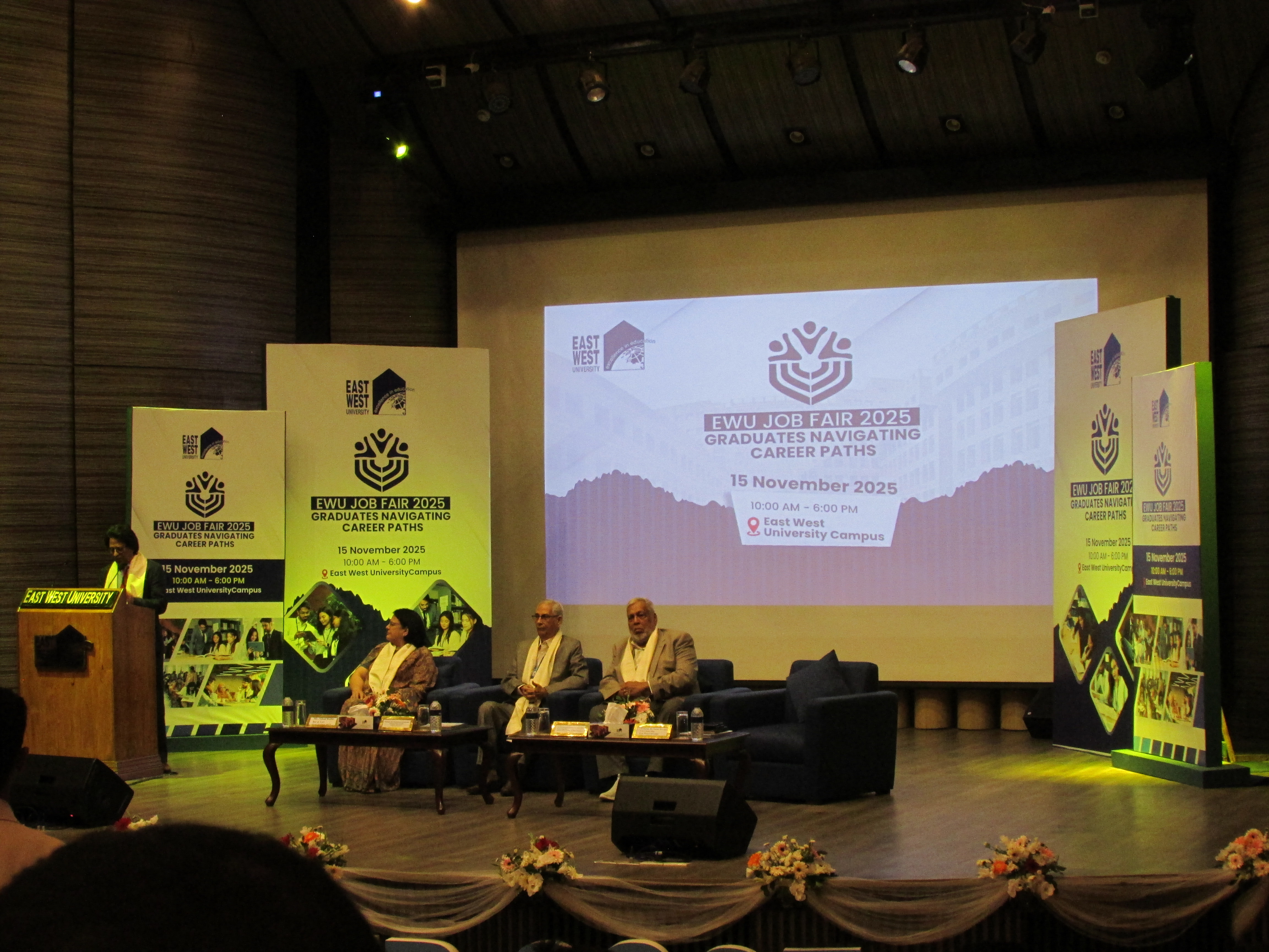 East West University (EWU) hosted a day-long ‘Job Fair’ on 15 November 2025, connecting thousands of aspiring graduates with 70 leading national and multinational organizations. The event was inaugurated by Muhammad Fouzul Kabir Khan, Adviser to the Ministry of Power, Energy, and Mineral Resources at the EWU campus in Aftabnagar, Dhaka. In his address, Mr. Khan called on the youths to enter politics, stressing the critical need for ethical leadership. "There is a need for honest people in the politics of Bangladesh. I urge honest individuals to build their careers in politics," said Mr. Khan. He also advised students to focus on innovation and entrepreneurship rather than solely pursuing job opportunities. Stating that global demand has shifted: "The demand for skillness is increasing than the degrees. What I can do is more important than the degree I have achieved." He called on young people to generate wealth through production and innovation rather than lobbying or pursuing undue advantage. Barrister Nihad Kabir, Former President of the Metropolitan Chamber of Commerce and Industries (MCCI), Dhaka, and Special Guest at the event, highlighted the fair’s value, calling it a "great opportunity" for students to choose their desired career paths and learn details about their preferred organizations, as well as the opportunity for the employers too.