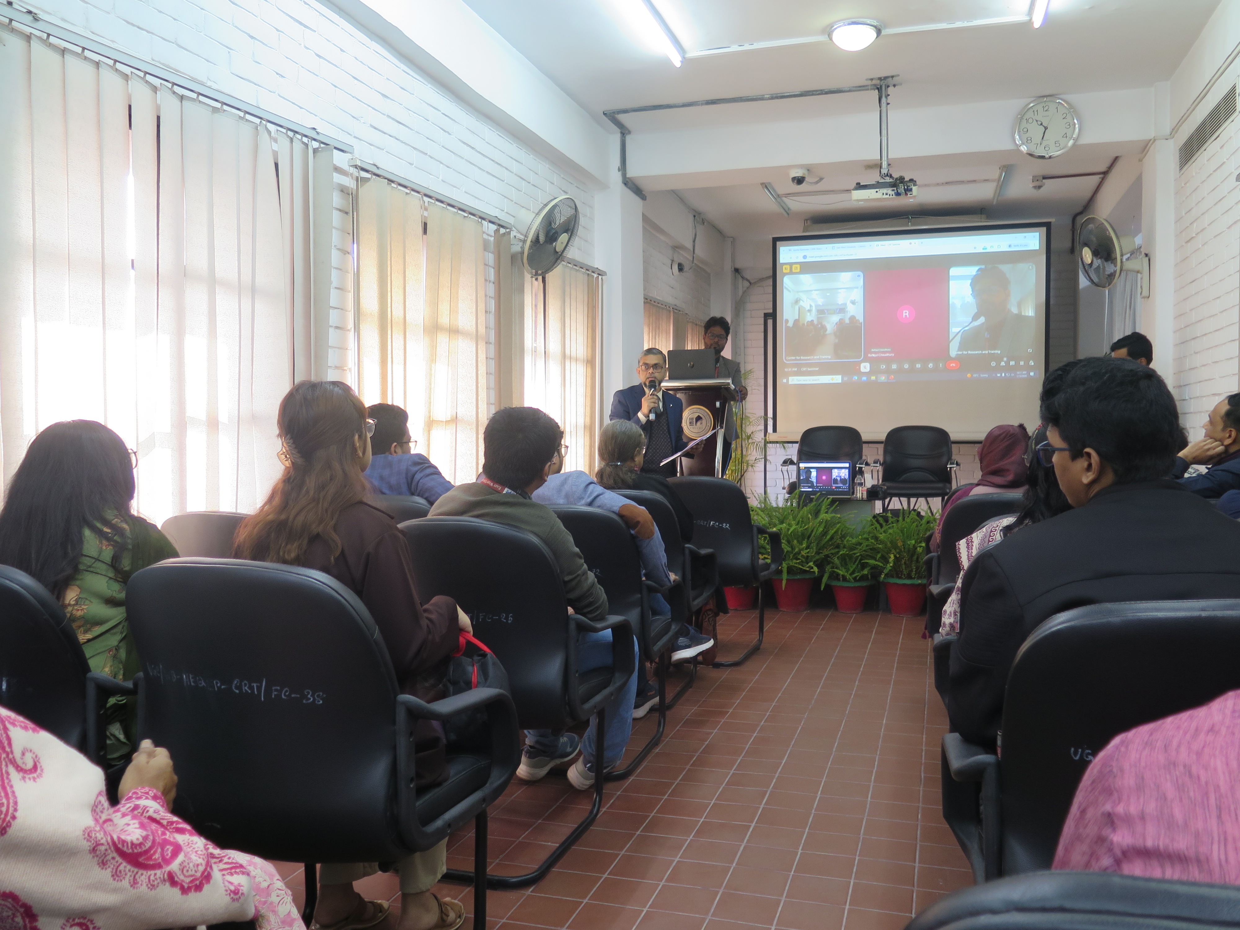 In attendance were Dr. Rafiqul Huda Chaudhury and esteemed members of the Board of Trustees of EWU. The seminar concluded with a vibrant and interactive Q&A segment, where faculty members, students, and EWUCRT officials engaged deeply with the presenters on the findings and implications of their research.