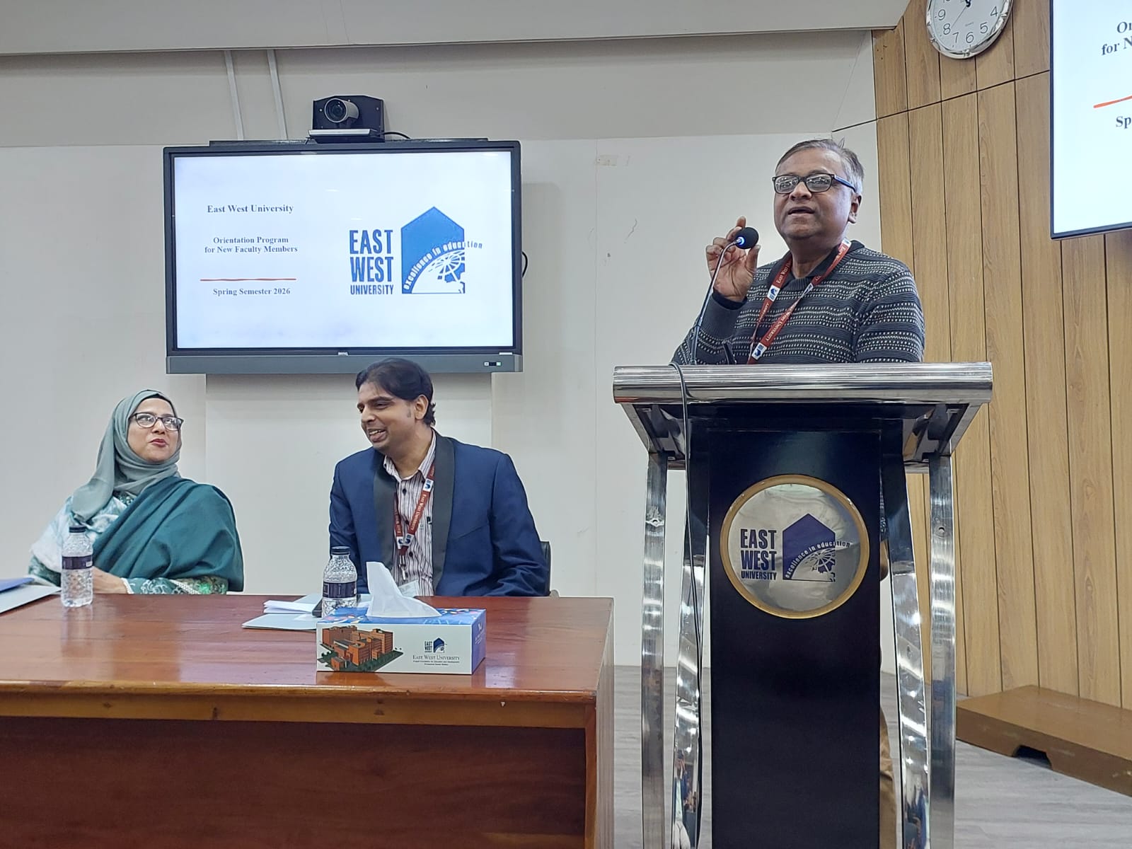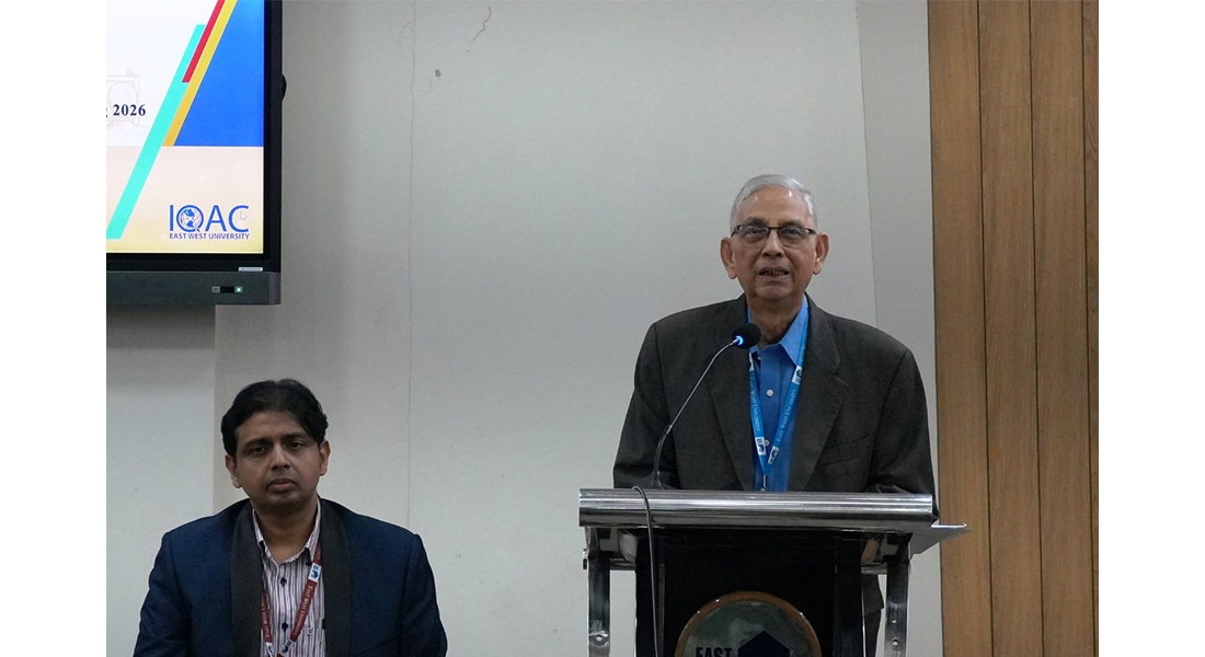 The Institutional Quality Assurance Cell (IQAC) of East West University (EWU) organized a day-long Orientation Program on 24 January 2026 for the newly recruited faculty members who joined during the Spring 2026 semester. Professor Dr. Mohammed Farashuddin, Chairperson, Board of Trustees, EWU and Founder Vice Chancellor, EWU attended the inaugural ceremony as the chief guest, while Professor Dr. Shams Rahman, Vice Chancellor of EWU present as the special guest.