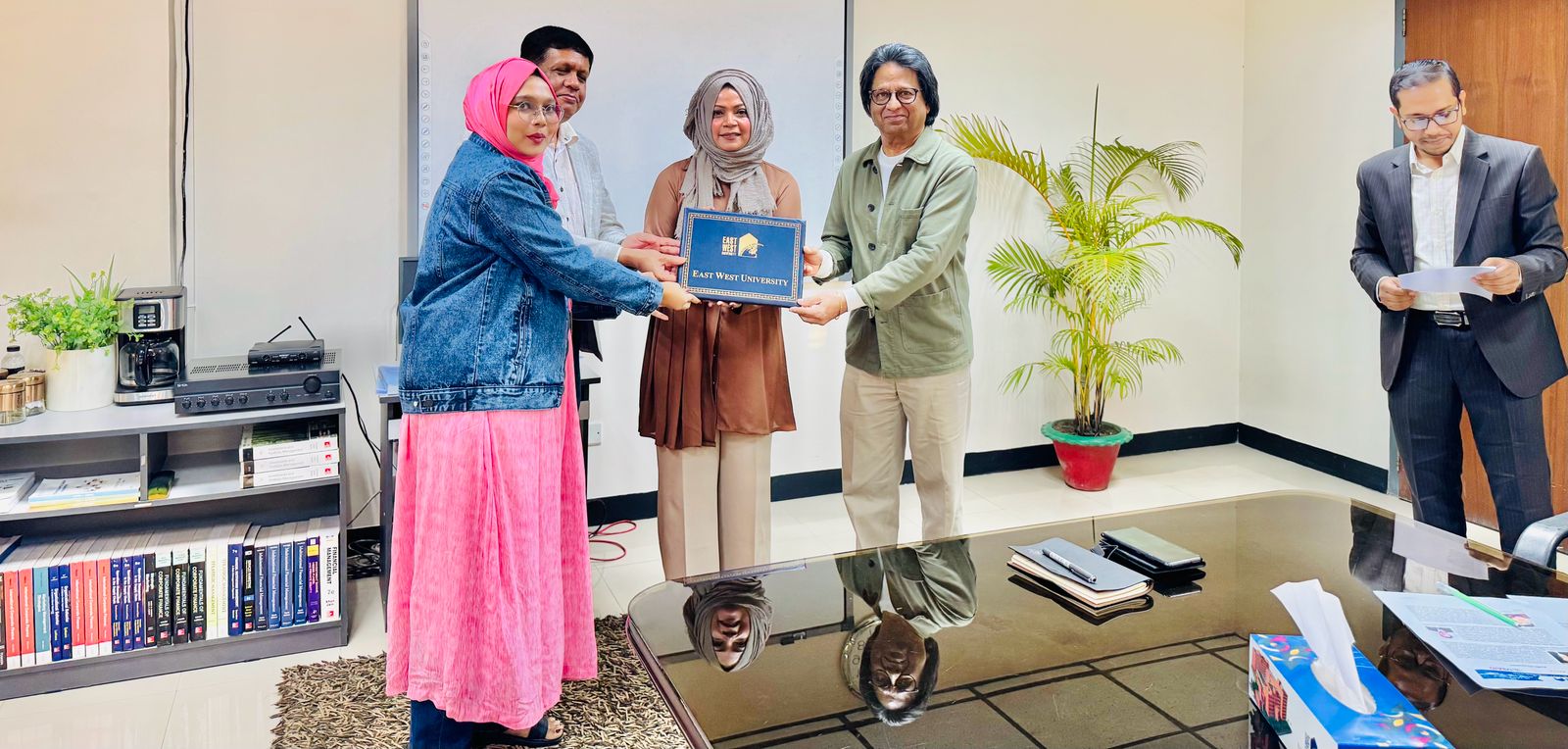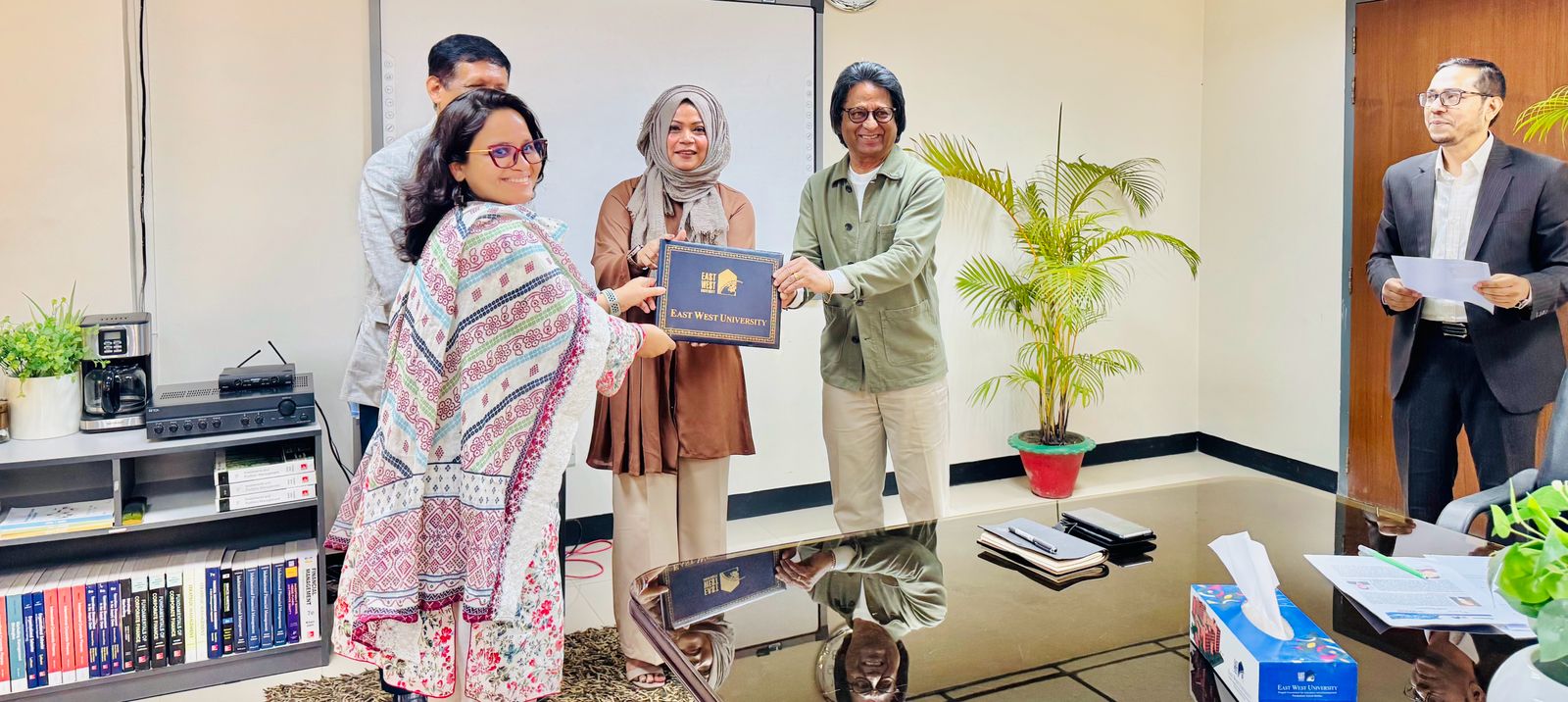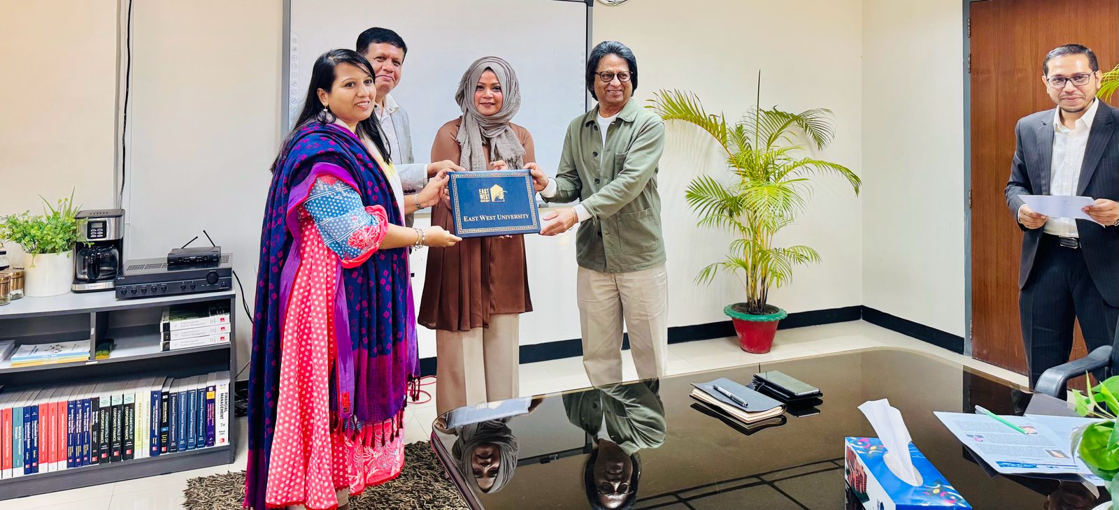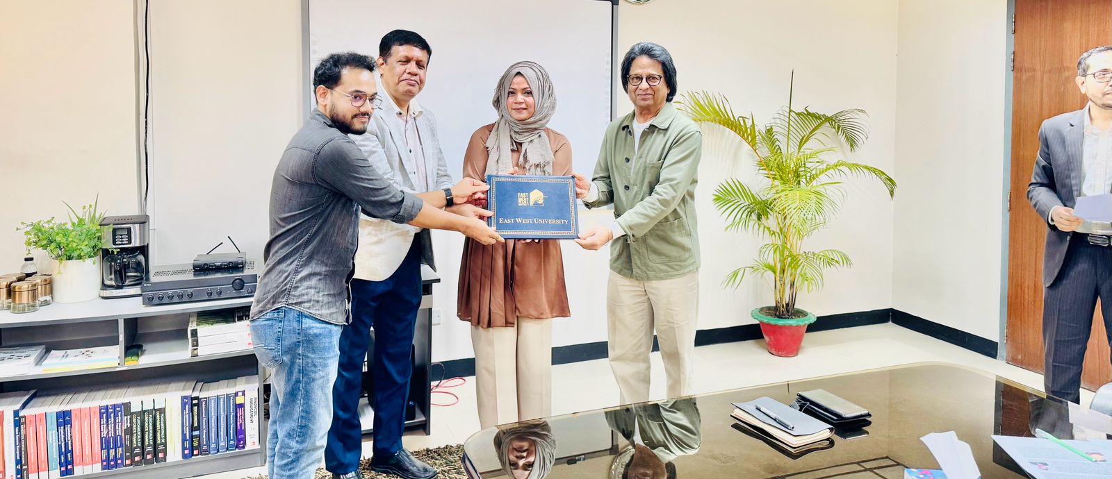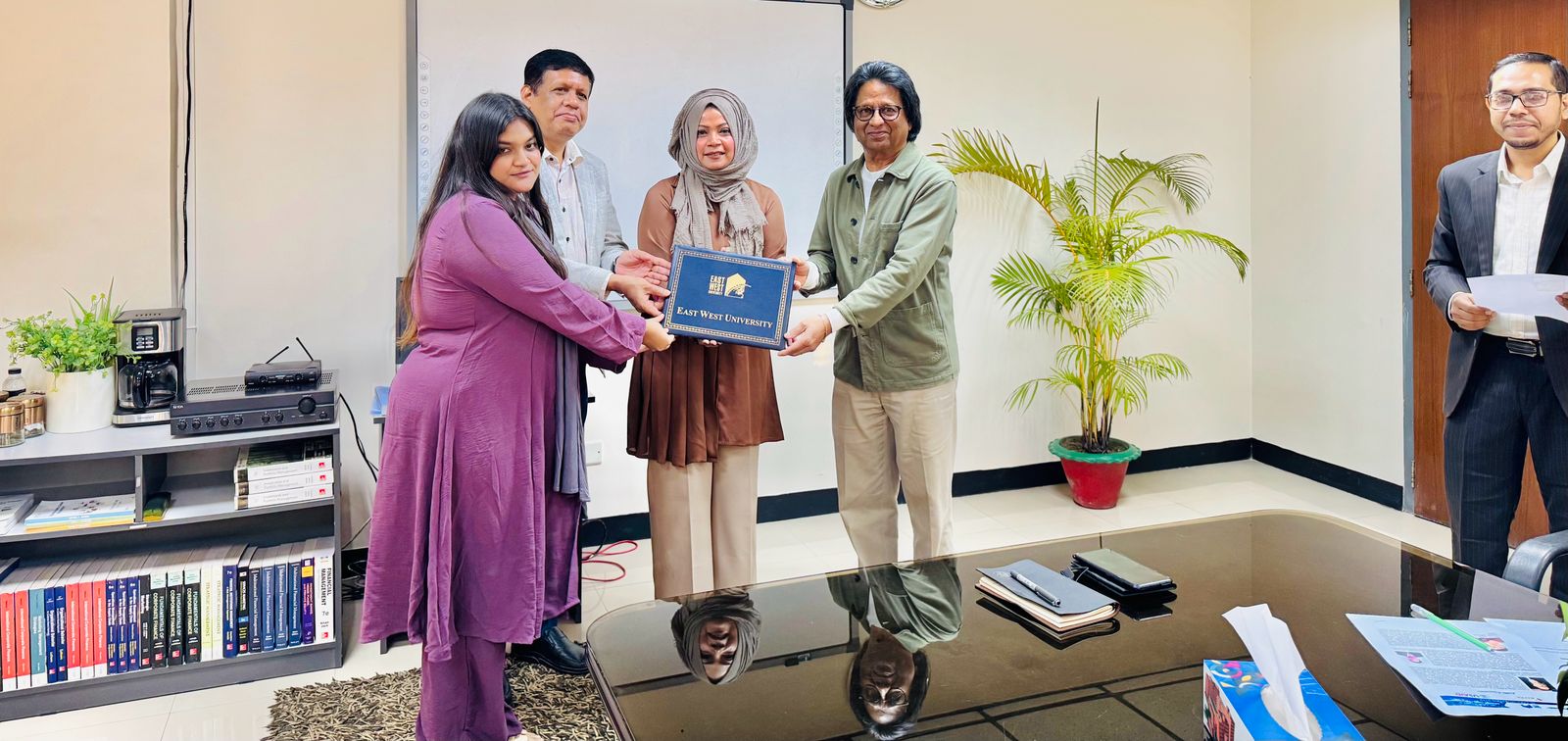 A Certificate-Giving Ceremony of the certificate course Integrated Supply Chain Management Program, offered by East West University in Collaboration with the Bangladesh Freight Forwarders Association (BAFFA), was held on 14 December 2025 at 3:00 PM in Room 418, BBA Seminar Room. The event was honored by the presence of Professor Shams Rahman, Vice Chancellor, Dr Farhana Ferdousi, Chairperson & Professor; Department of Business Administration and Md. Anamul Hoque, Assistant Professor, Department of Business Administration from East West University and Mohammed Jahir Ahmmed Sarker, Director, Bangladesh Freight Forwarders Association (BAFFA) and President, Bangladesh Logistics & Supply Chain Federation, Managing Director, Air Sea Global Freight Limited, CEO, ASG Expo Logistics & World Trade Inc. Professor Shams Rahman highlighted the program’s significance and prospects, while Dr Ferdousi expressed gratitude for his invaluable support in developing the course module. Md. Anamul Hoque encouraged participants to share their feedback, and they expressed their enthusiasm upon successfully completing the four-month course. The ceremony concluded with distributing certificates to the participants and on a celebratory note, with all dignitaries extending sincere congratulations to the graduating participants.