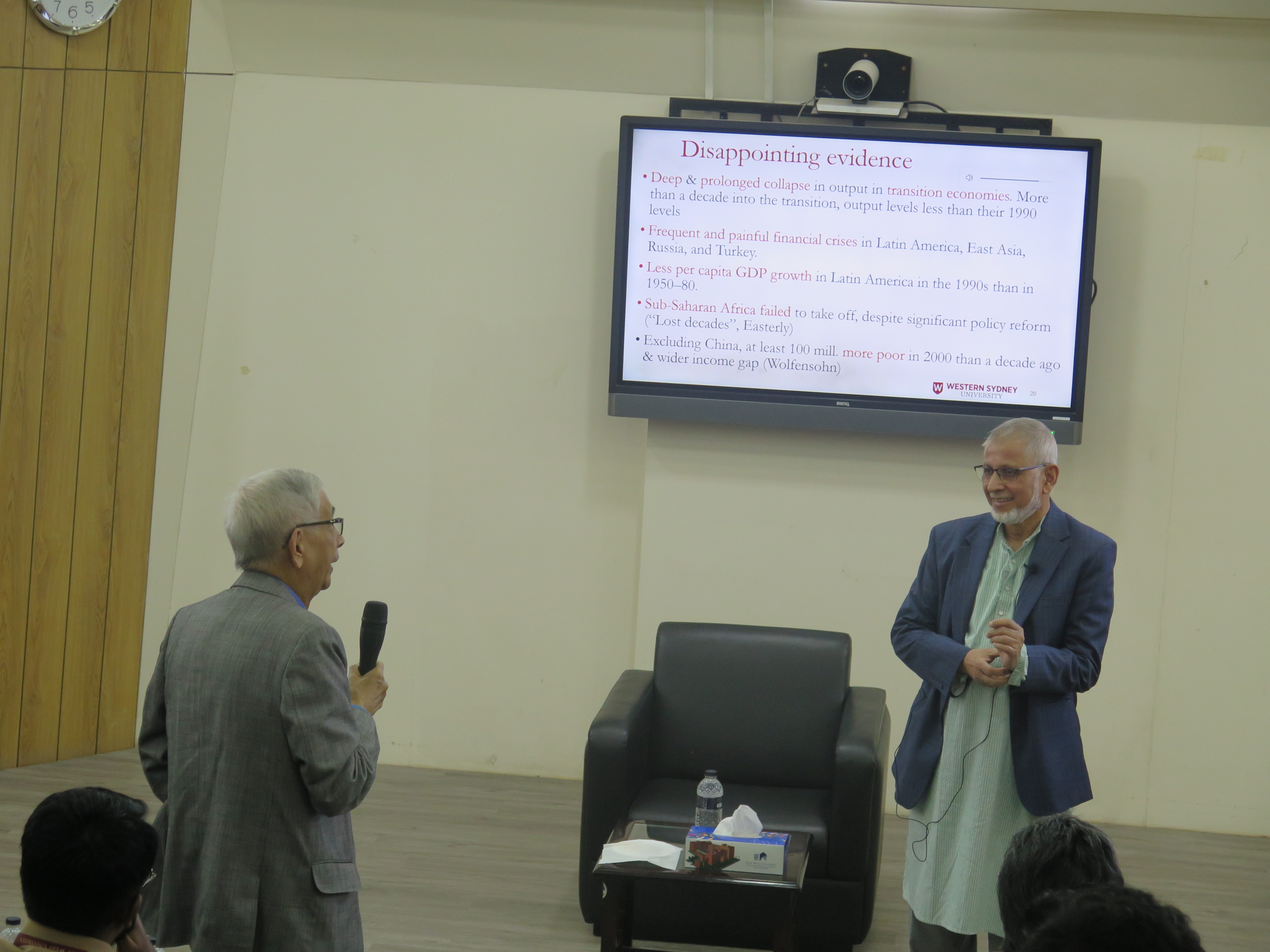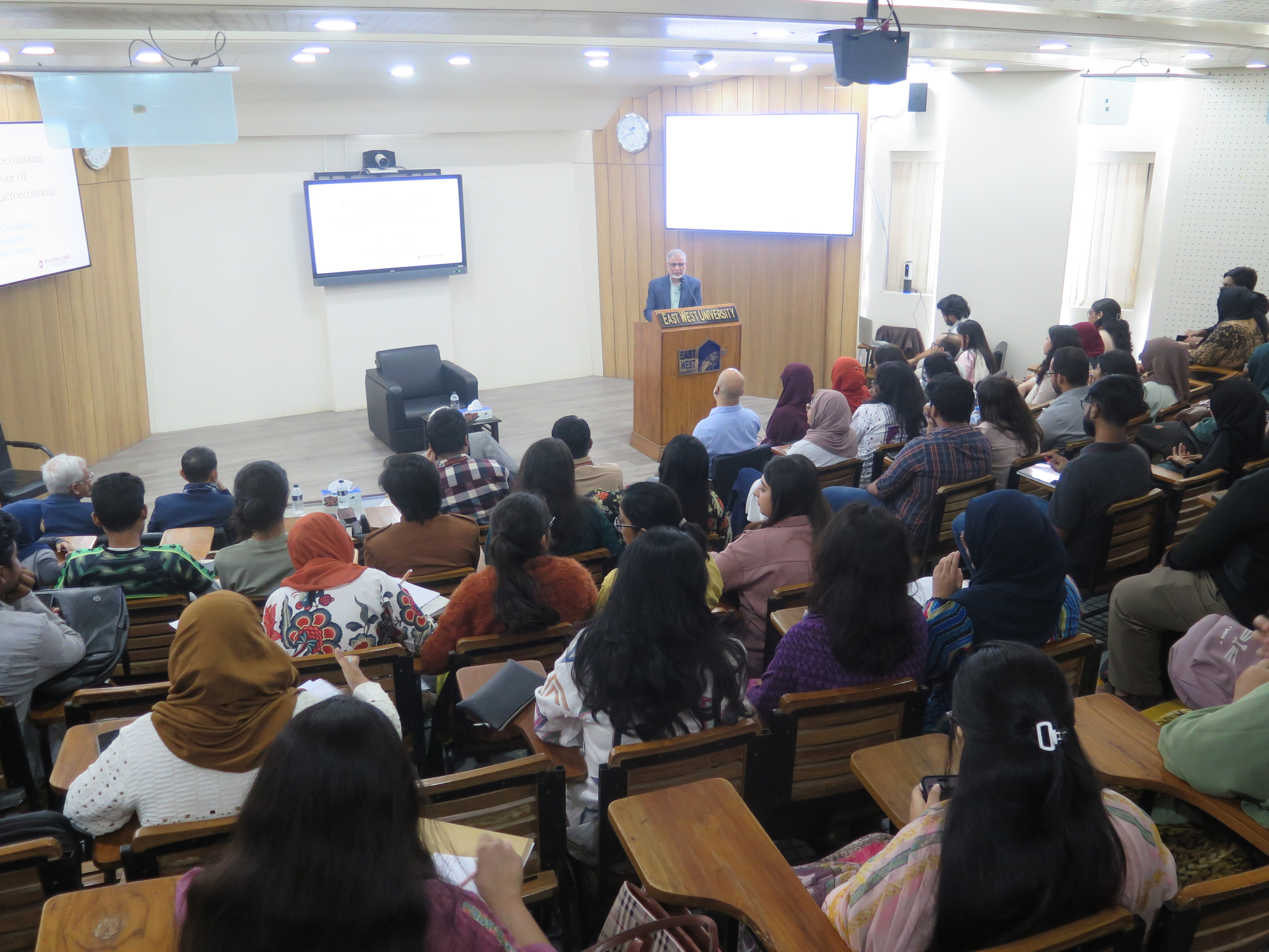 The seminar was attended by notable university figures, including Professor Dr. Mohammed Farashuddin, Chairperson of the Board of Trustees; Professor Dr. Shams Rahman, Vice Chancellor; Professor Dr. M. Ashik Mosaddik, Pro Vice Chancellor; and Air Cdre (Retd.) Ishfaq Ilahi Choudhury, Treasurer of the university. The presence of university leadership, together with the expertise of the speaker, underscored the event's importance in addressing critical issues in economic theory and practice relevant to both national and global development. A large number of faculty members and students from the Department of Economics participated in the seminar.