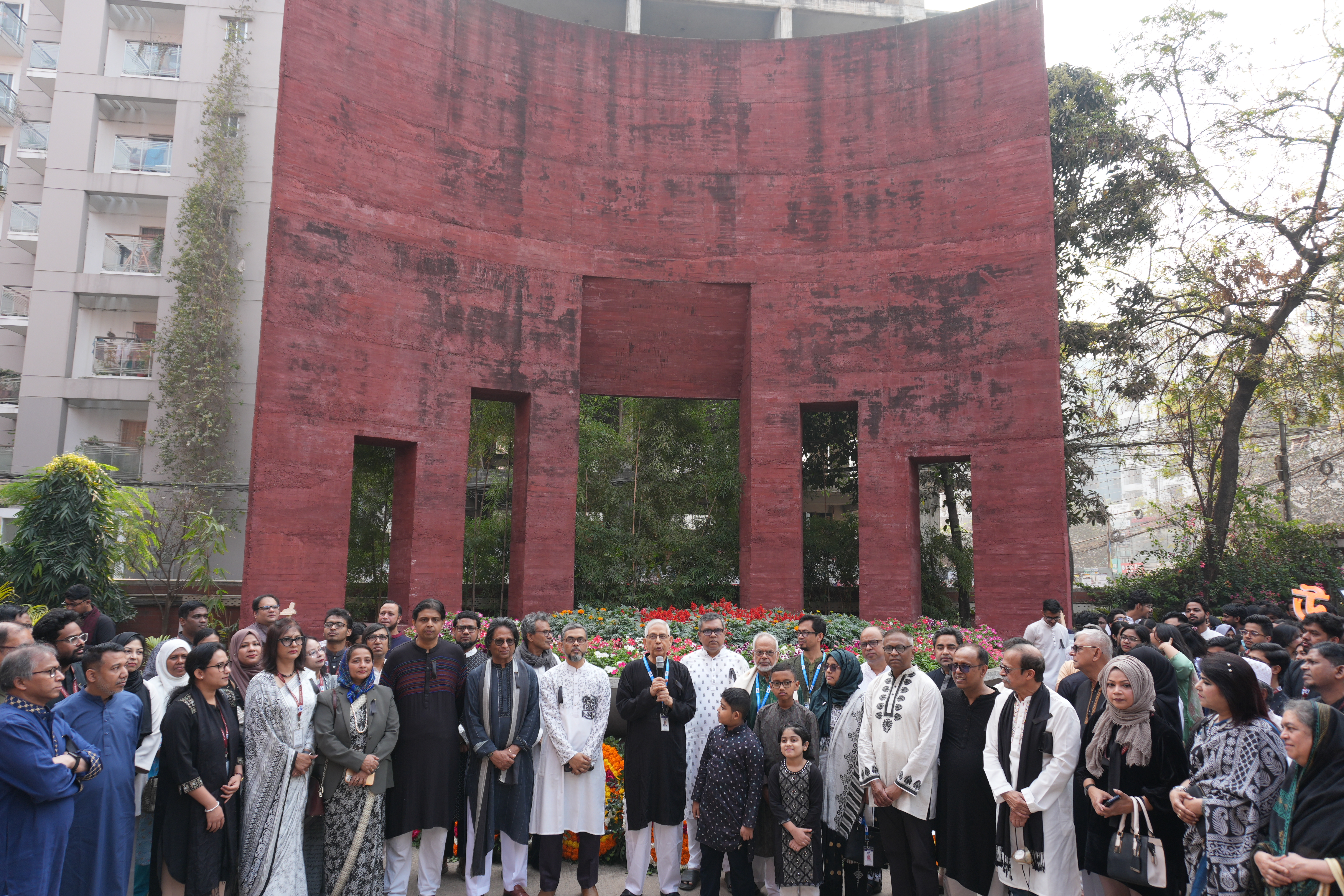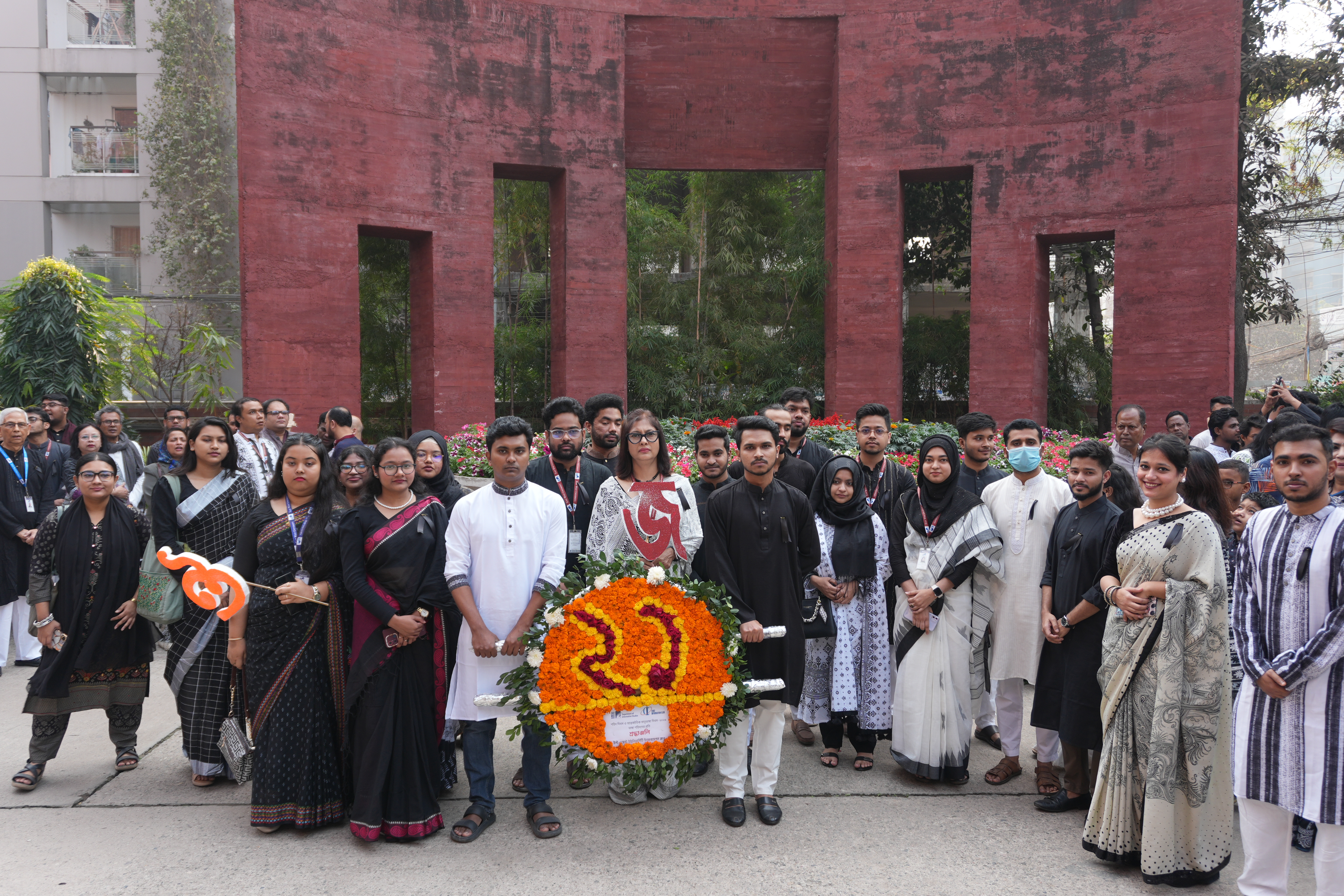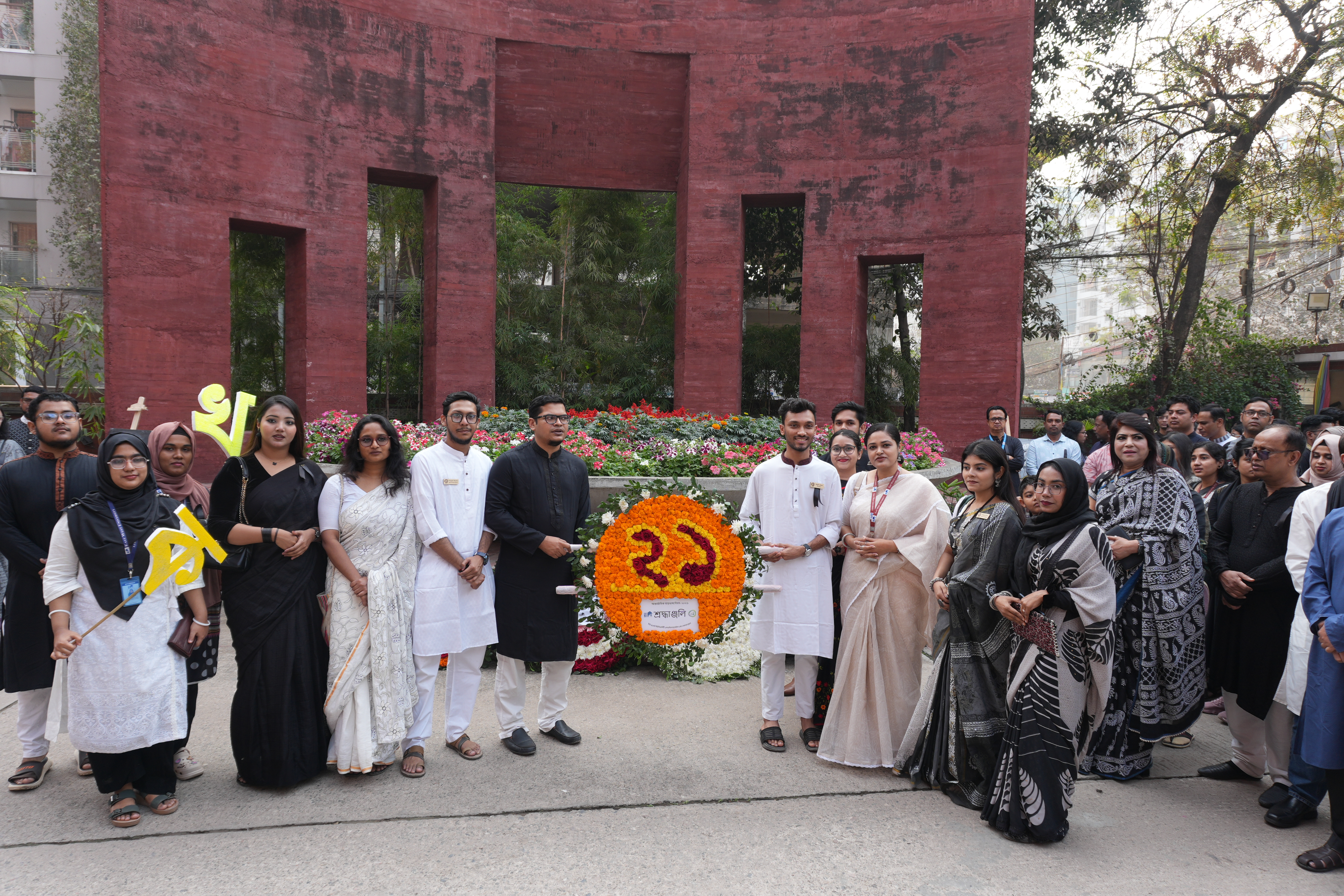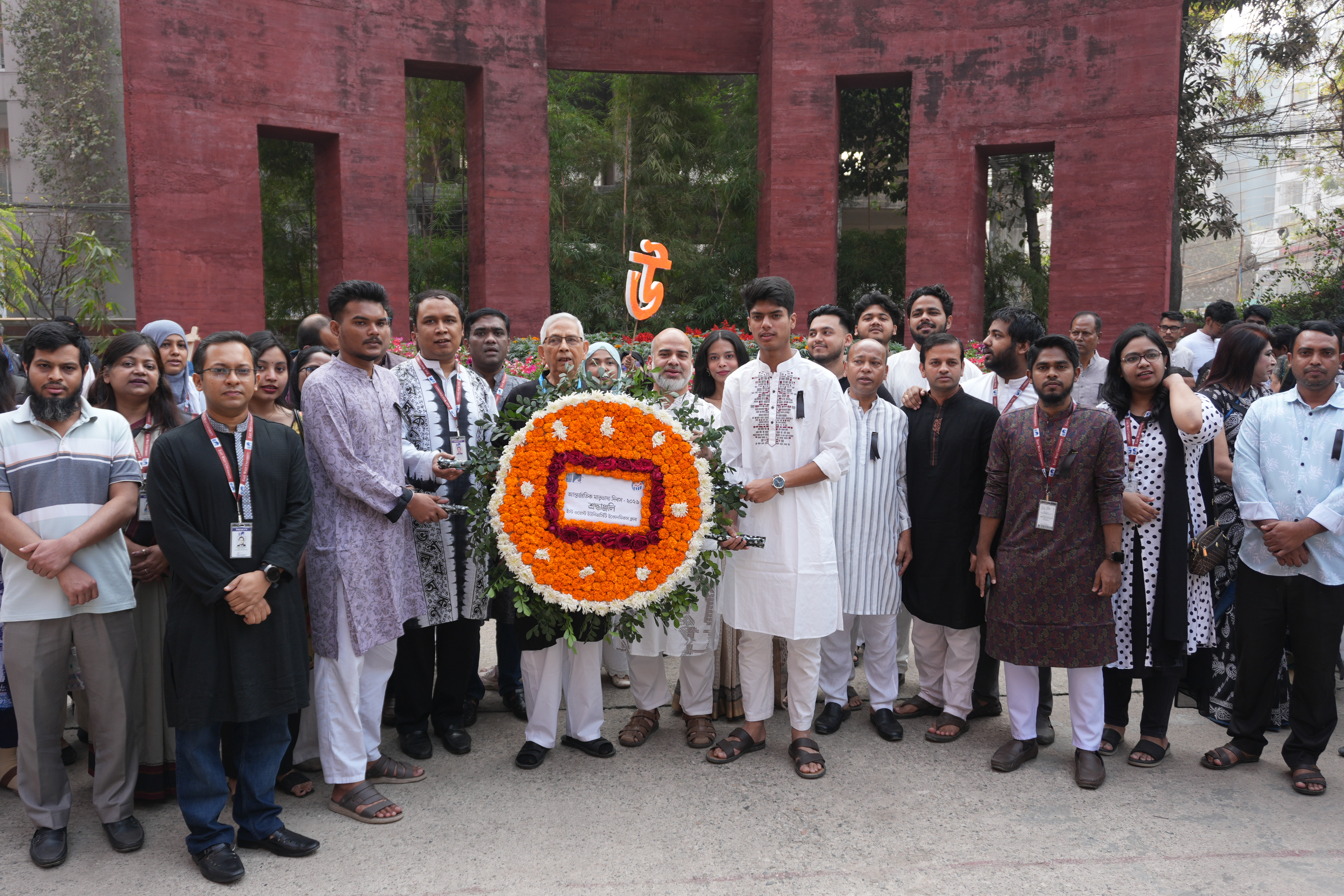 The commemoration began in the early hours of the 21st February 2026 morning with a "Provat Fery" rally through the Aftabnagar area. Participants, including members of the university administration, faculty, and students, marched in a disciplined procession to mark the occasion. Following the rally, a floral wreath-laying ceremony took place at the university’s own ‘Shaheed Minar’ on campus. Wreaths were placed in a gesture of deep respect by the Board of Trustees, University Administration, and various academic departments and student clubs.