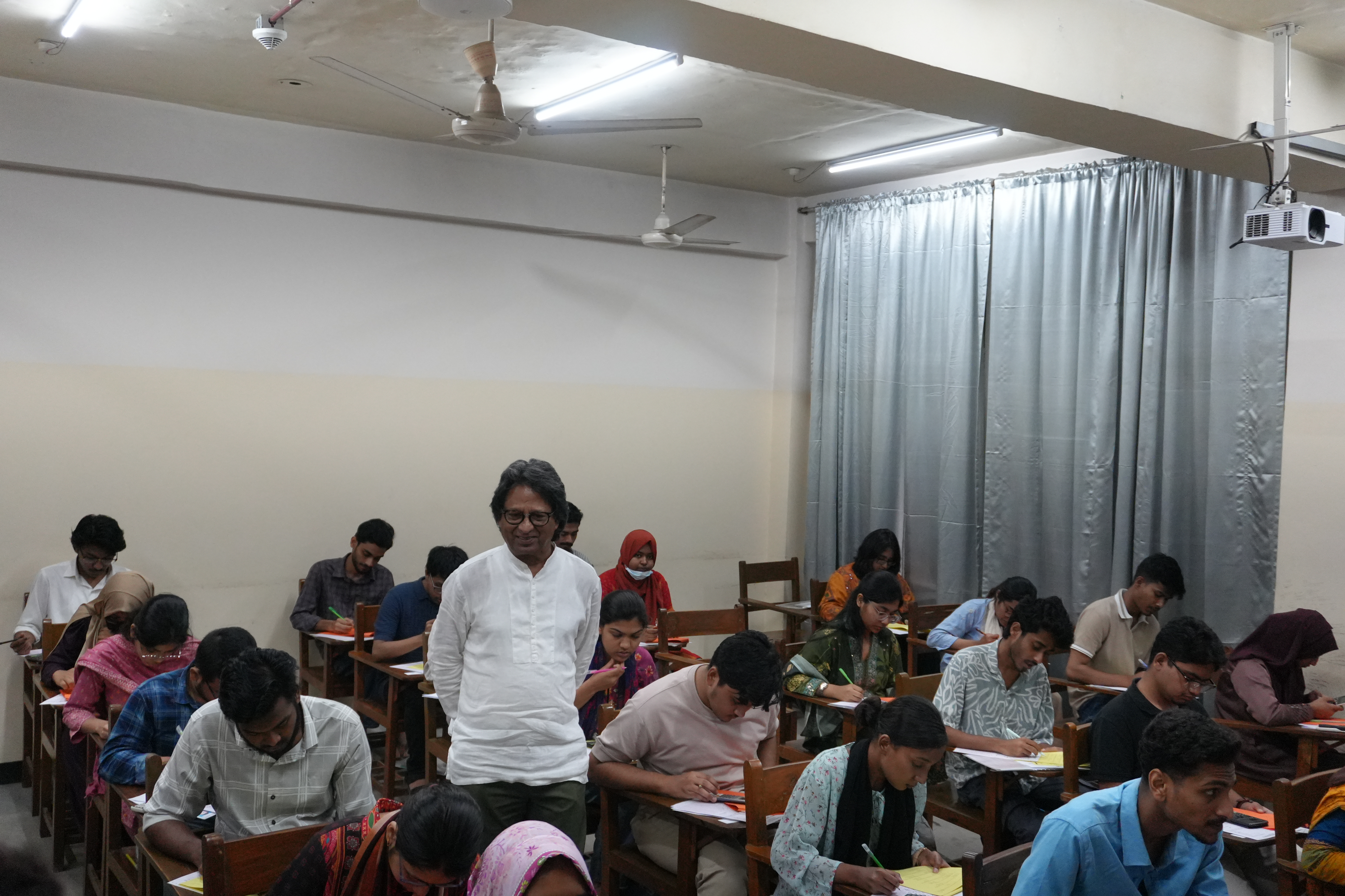 The university’s leadership was present at the campus entrance to personally welcome the aspiring students. Notable attendees included Professor Dr. Mohammed Farashuddin, Chairperson of the Board of Trustees; Professor Dr. Shams Rahman, Vice-Chancellor; Professor Dr. M. Ashik Mosaddik, Pro Vice-Chancellor; Air Commodore (retd) Ishfaq Ilahi Choudhury, Treasurer; and Dr. Anisur Rahman, Proctor. During the examination, the leadership team visited several halls to oversee the proceedings and expressed their high satisfaction with the disciplined and efficient execution of the admission process.