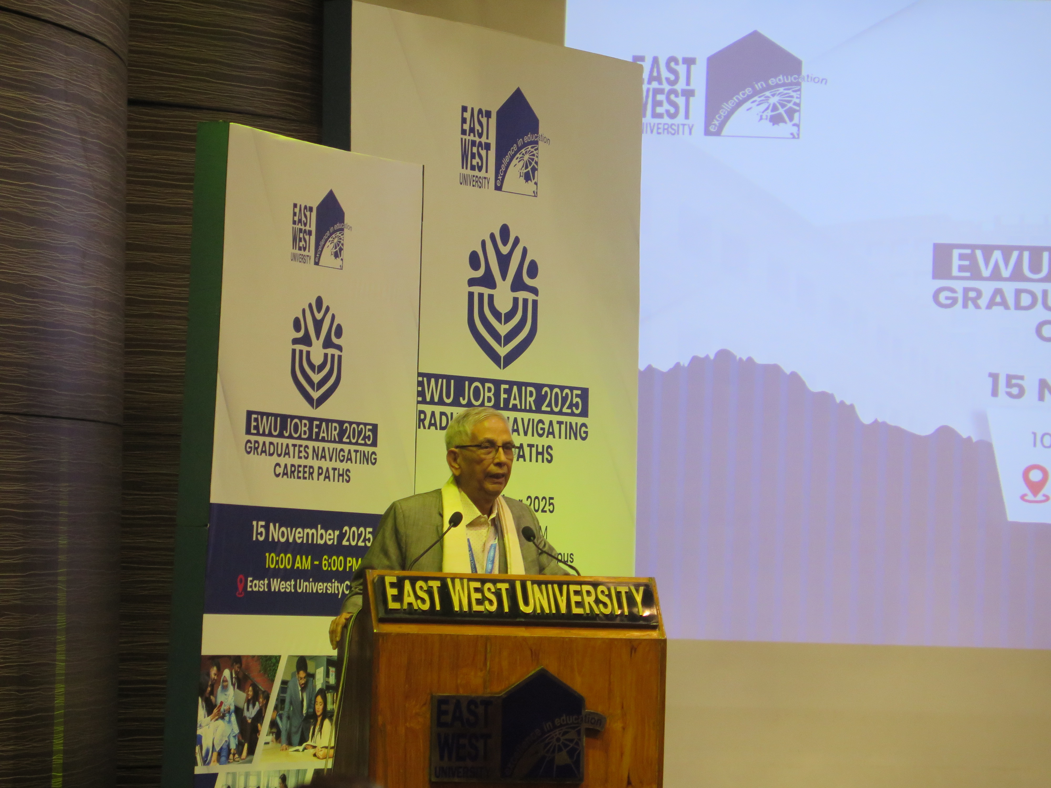 East West University (EWU) hosted a day-long ‘Job Fair’ on 15 November 2025, connecting thousands of aspiring graduates with 70 leading national and multinational organizations. The event was inaugurated by Muhammad Fouzul Kabir Khan, Adviser to the Ministry of Power, Energy, and Mineral Resources at the EWU campus in Aftabnagar, Dhaka. In his address, Mr. Khan called on the youths to enter politics, stressing the critical need for ethical leadership. "There is a need for honest people in the politics of Bangladesh. I urge honest individuals to build their careers in politics," said Mr. Khan. He also advised students to focus on innovation and entrepreneurship rather than solely pursuing job opportunities. Stating that global demand has shifted: "The demand for skillness is increasing than the degrees. What I can do is more important than the degree I have achieved." He called on young people to generate wealth through production and innovation rather than lobbying or pursuing undue advantage. Barrister Nihad Kabir, Former President of the Metropolitan Chamber of Commerce and Industries (MCCI), Dhaka, and Special Guest at the event, highlighted the fair’s value, calling it a "great opportunity" for students to choose their desired career paths and learn details about their preferred organizations, as well as the opportunity for the employers too.