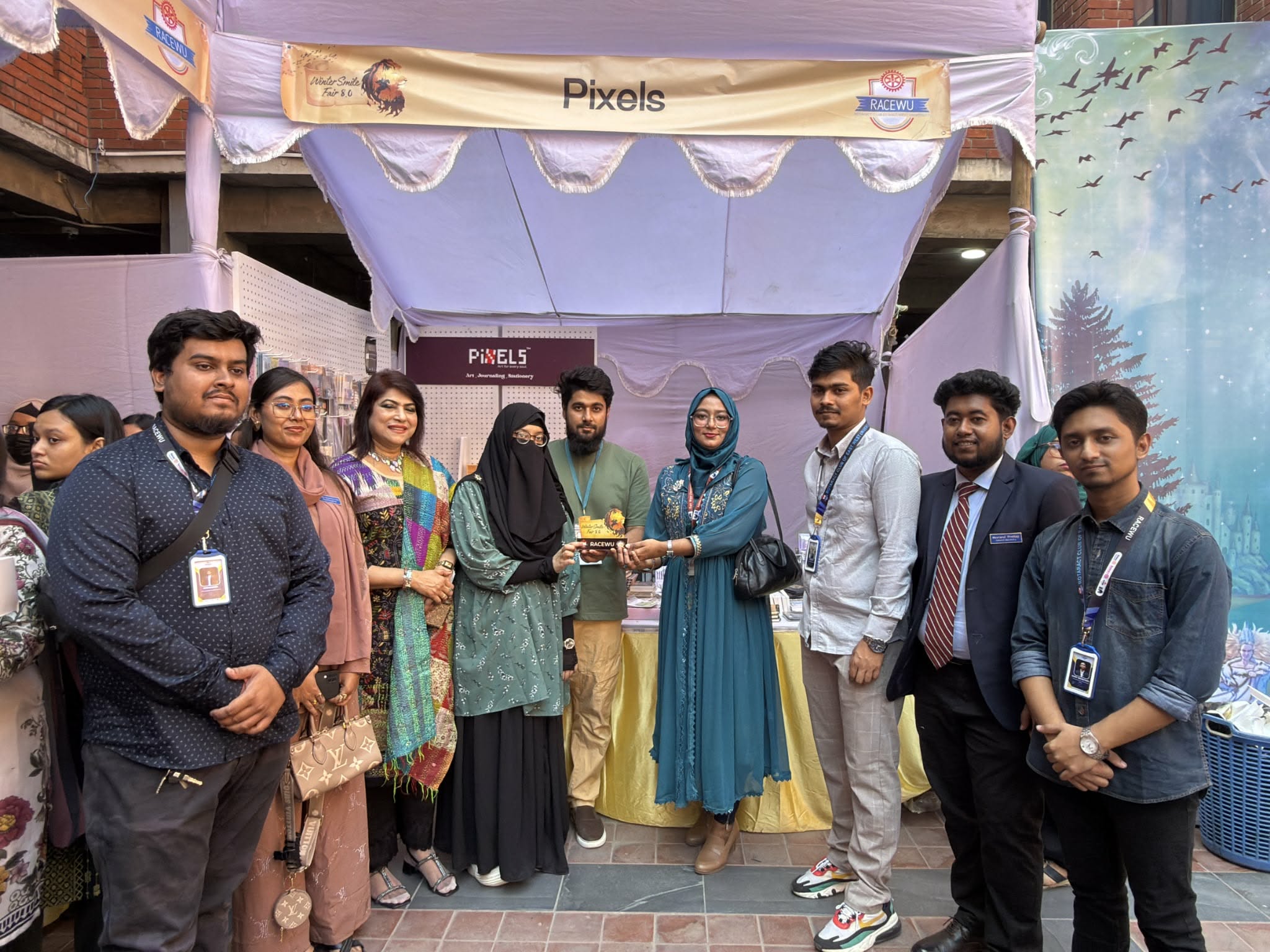 The stalls—including food, stationery, and accessories—attracted great appreciation from students and visitors. The second day carried the same energy and excitement. On the last day, crests were presented to all 24 stall owners in the presence of Ismat Shereen, Adviser, Students' Welfare and Head, CCC, and Nabila Farhin, Moderator, RACEWU.